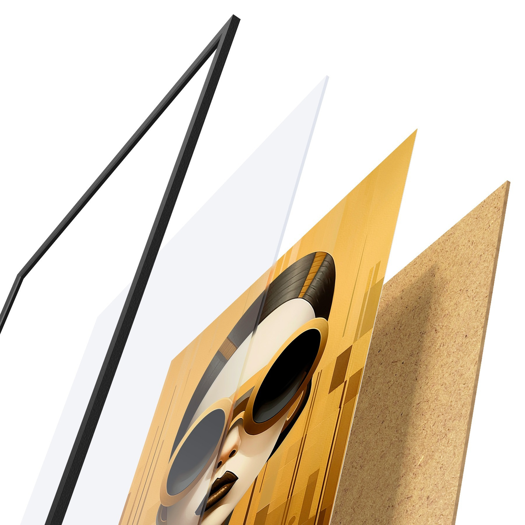 Le poster se compose d'un cadre, d'un plexiglas, d'une image imprimée et d'un support en aggloméré. Le poster peut être immédiatement accroché au mur grâce aux fixations au dos.