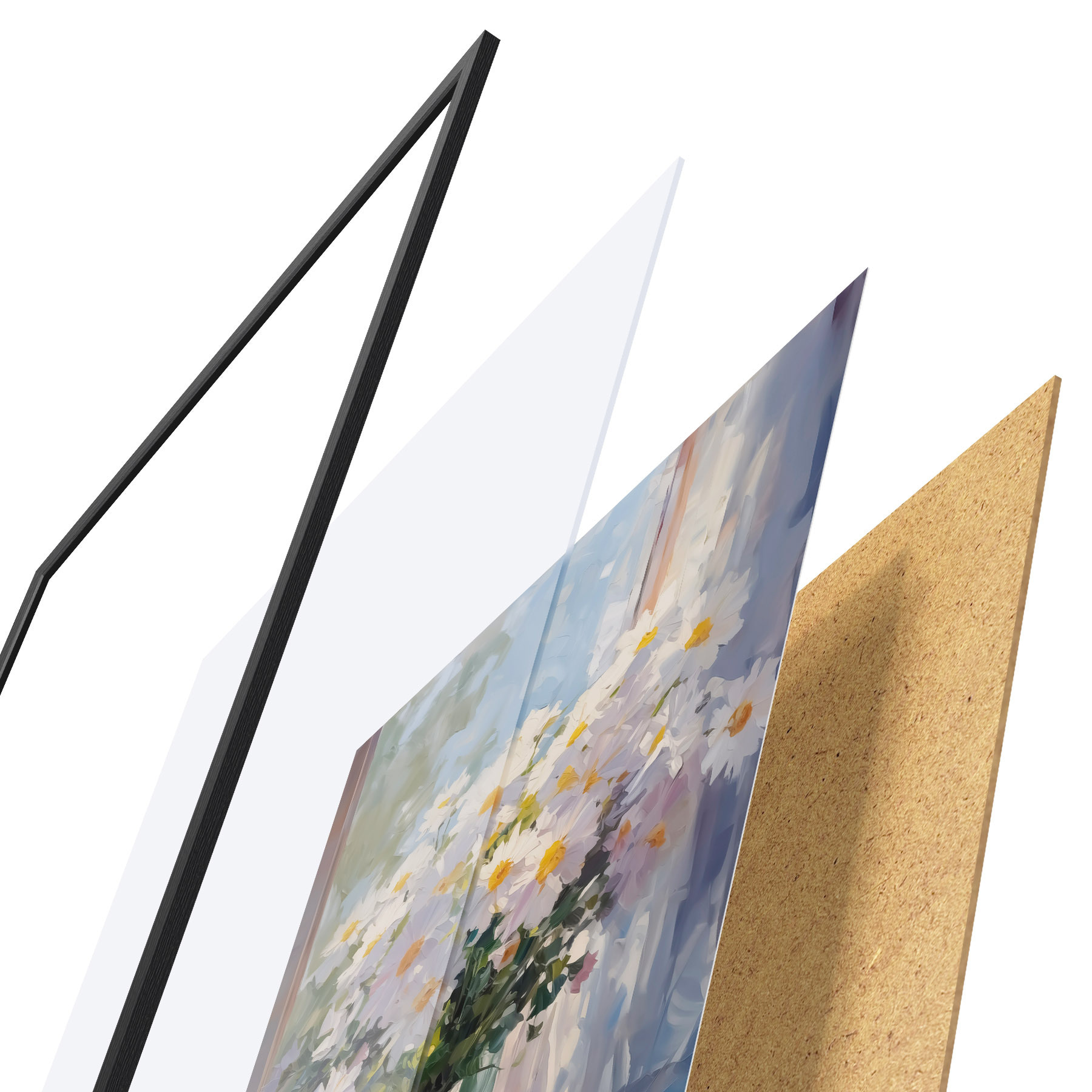 Le poster se compose d'un cadre, d'un plexiglas, d'une image imprimée et d'un support en aggloméré. Le poster peut être immédiatement accroché au mur grâce aux fixations au dos.