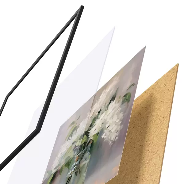 Le poster se compose d'un cadre, d'un plexiglas, d'une image imprimée et d'un support en aggloméré. Le poster peut être immédiatement accroché au mur grâce aux fixations au dos.