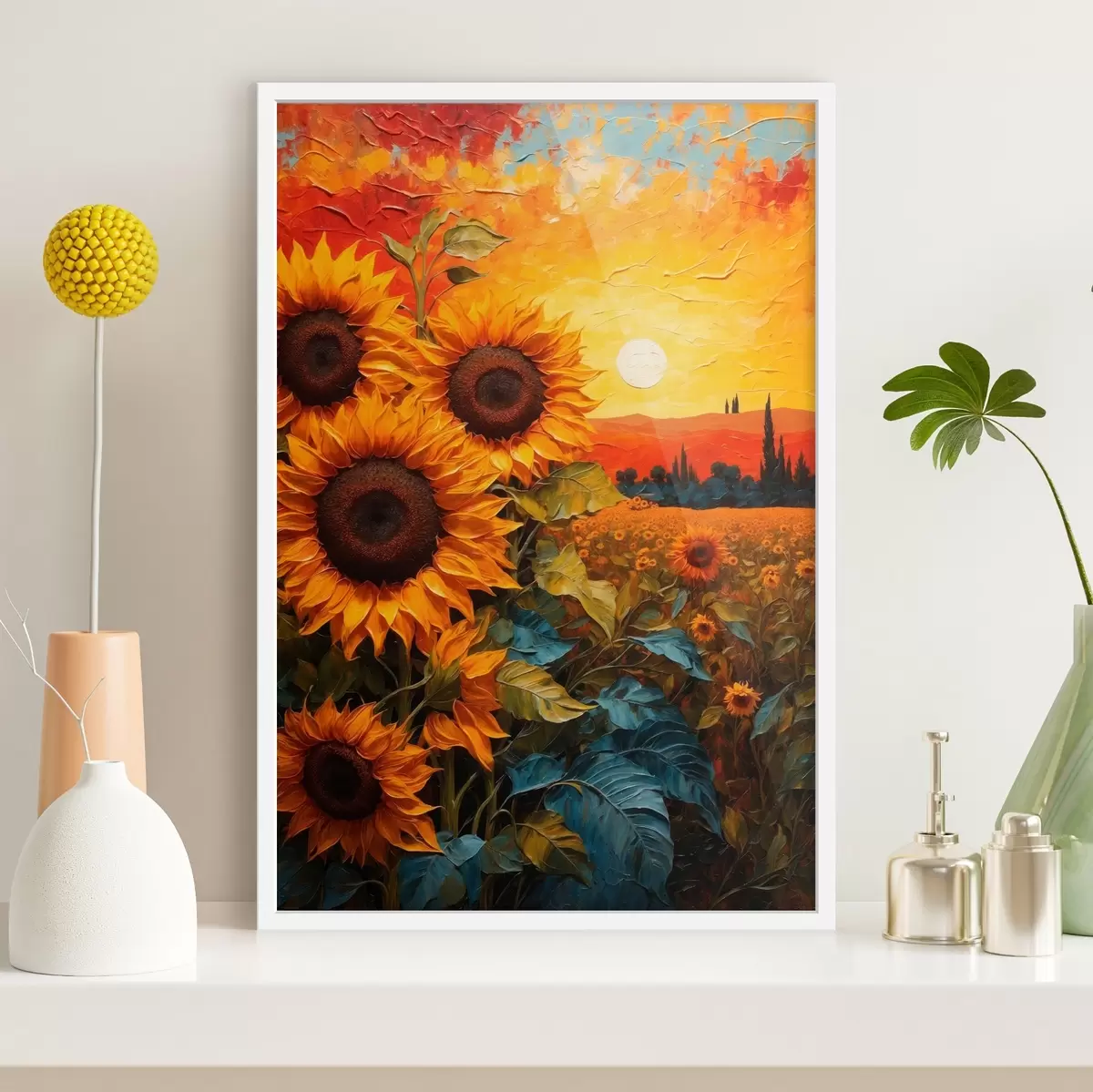 Affiche Champ de tournesols au coucher du soleil Non f43460