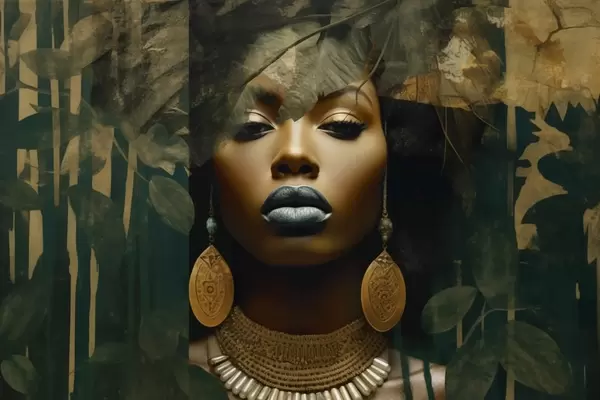 Affiche Visage de fille sur fond de forêt abstraite Non f43466