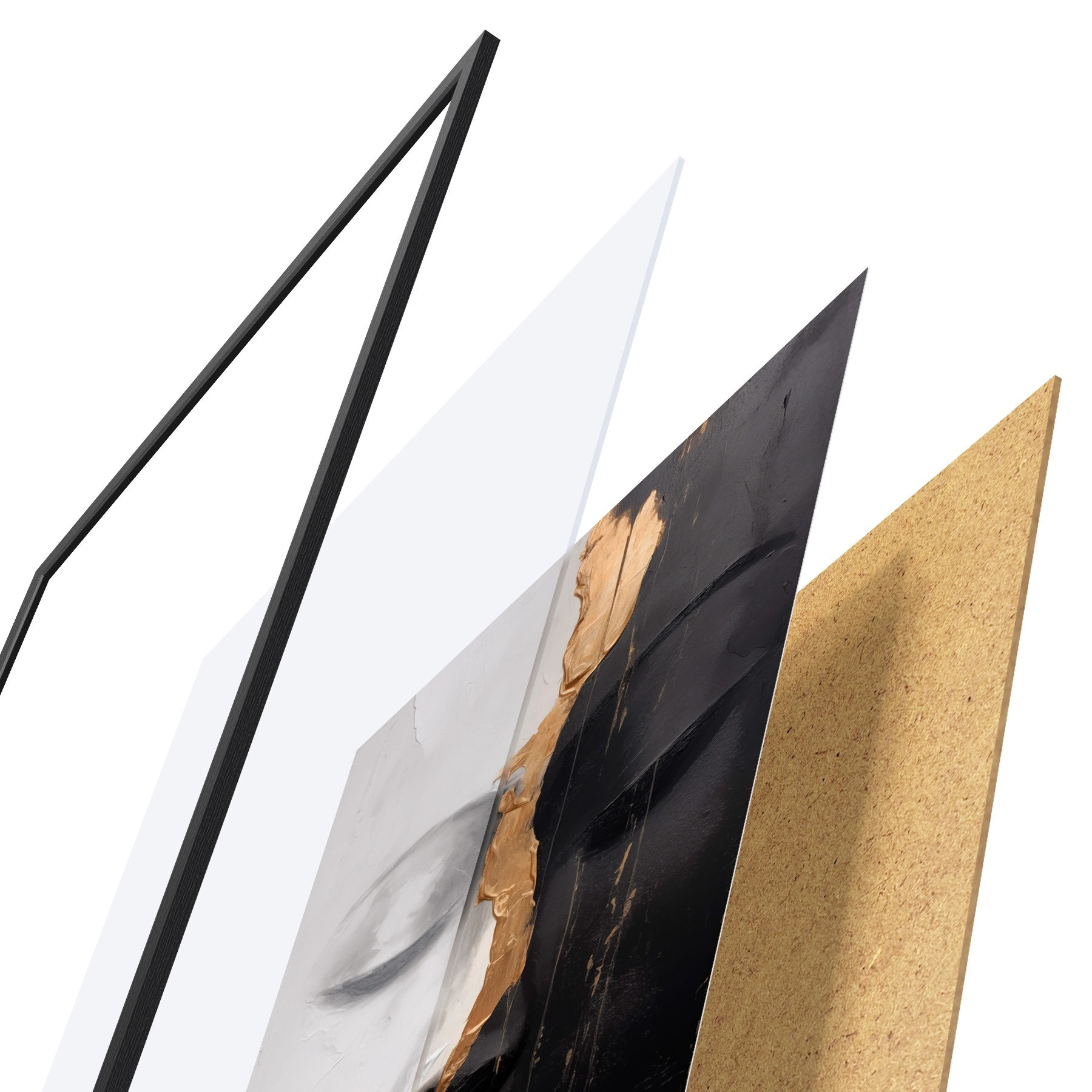 Le poster se compose d'un cadre, d'un plexiglas, d'une image imprimée et d'un support en aggloméré. Le poster peut être immédiatement accroché au mur grâce aux fixations au dos.