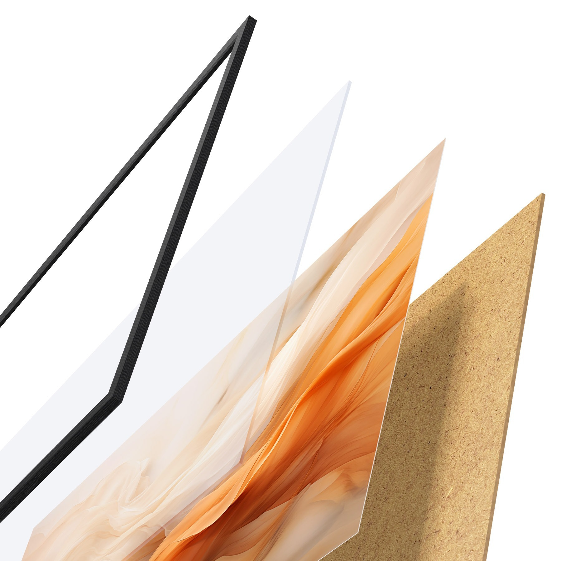 Le poster se compose d'un cadre, d'un plexiglas, d'une image imprimée et d'un support en aggloméré. Le poster peut être immédiatement accroché au mur grâce aux fixations au dos.