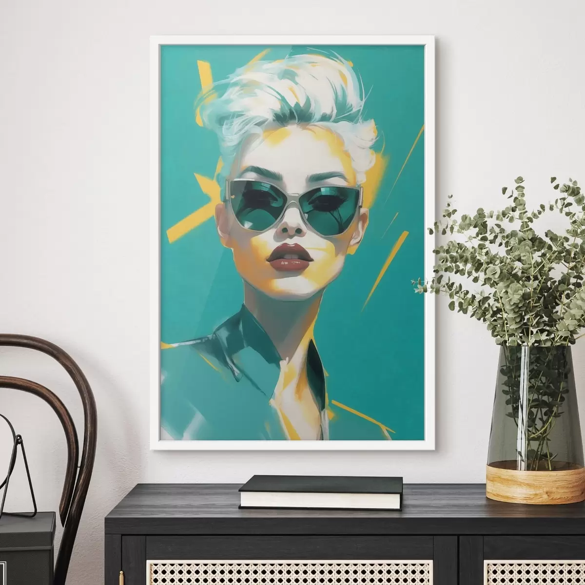 Le poster se compose d'un cadre, d'un plexiglas, d'une image imprimée et d'un support en aggloméré. Le poster peut être immédiatement accroché au mur grâce aux fixations au dos.