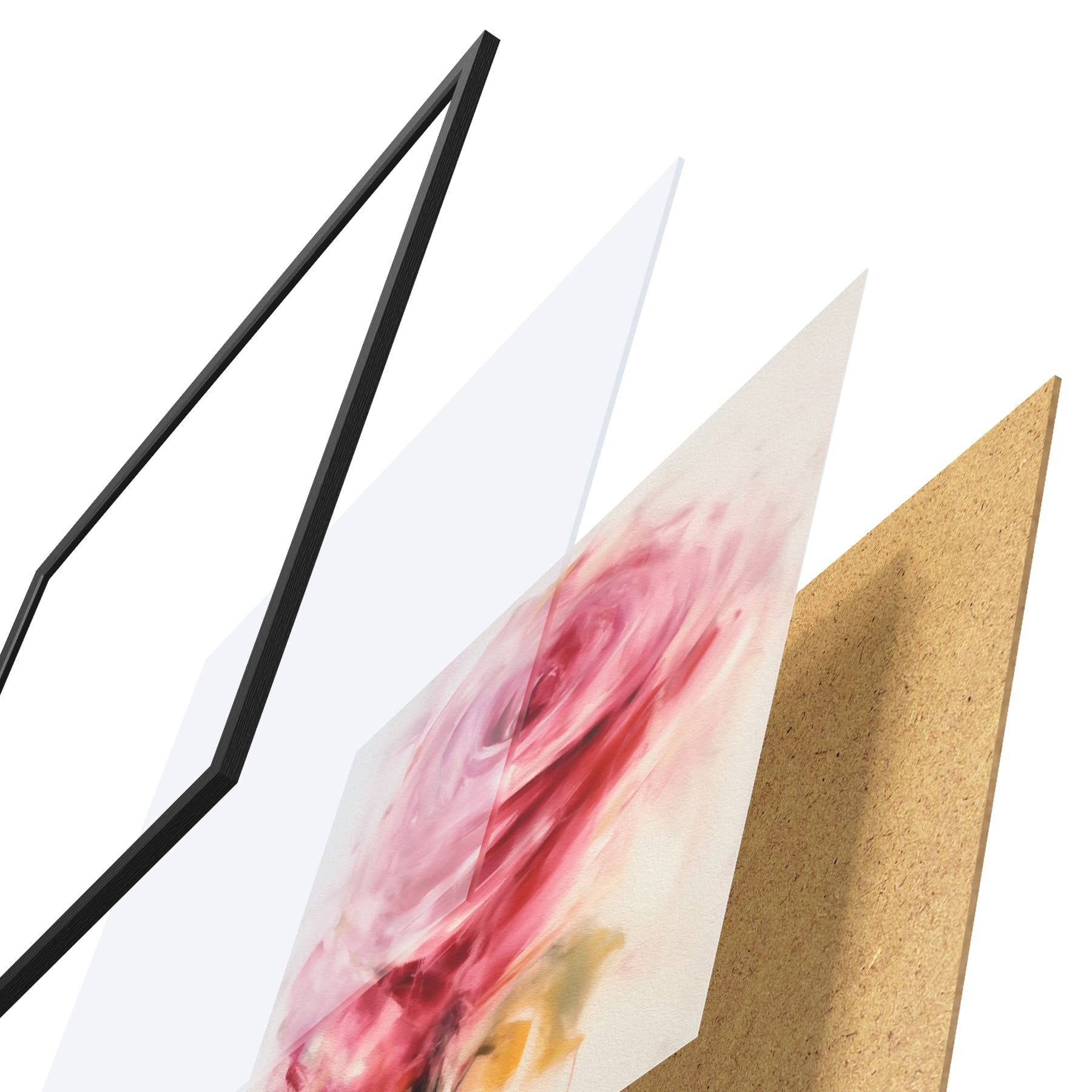 Le poster se compose d'un cadre, d'un plexiglas, d'une image imprimée et d'un support en aggloméré. Le poster peut être immédiatement accroché au mur grâce aux fixations au dos.