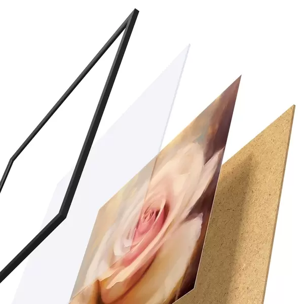 Le poster se compose d'un cadre, d'un plexiglas, d'une image imprimée et d'un support en aggloméré. Le poster peut être immédiatement accroché au mur grâce aux fixations au dos.