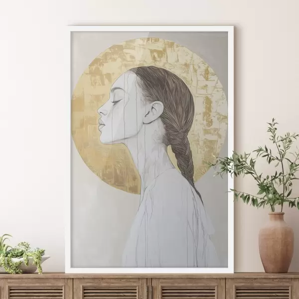 Affiche Portrait de femme, minimalisme, style acrylique, couleurs beiges f43504