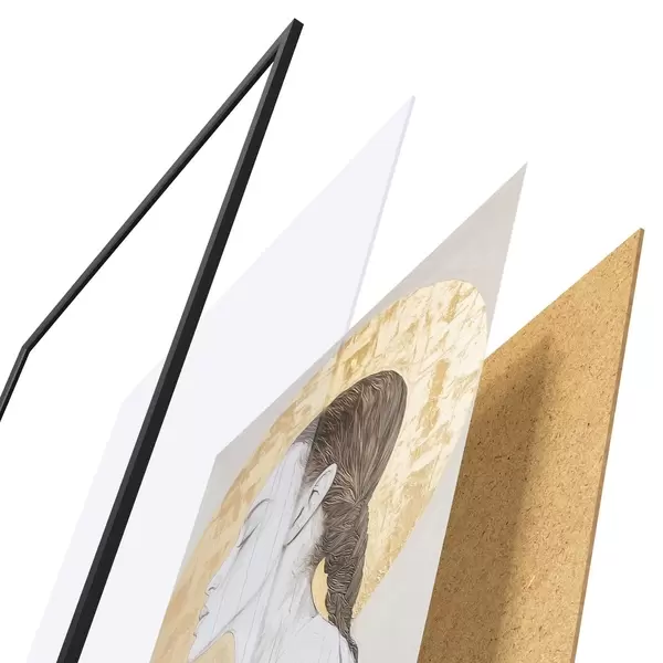 Le poster se compose d'un cadre, d'un plexiglas, d'une image imprimée et d'un support en aggloméré. Le poster peut être immédiatement accroché au mur grâce aux fixations au dos.