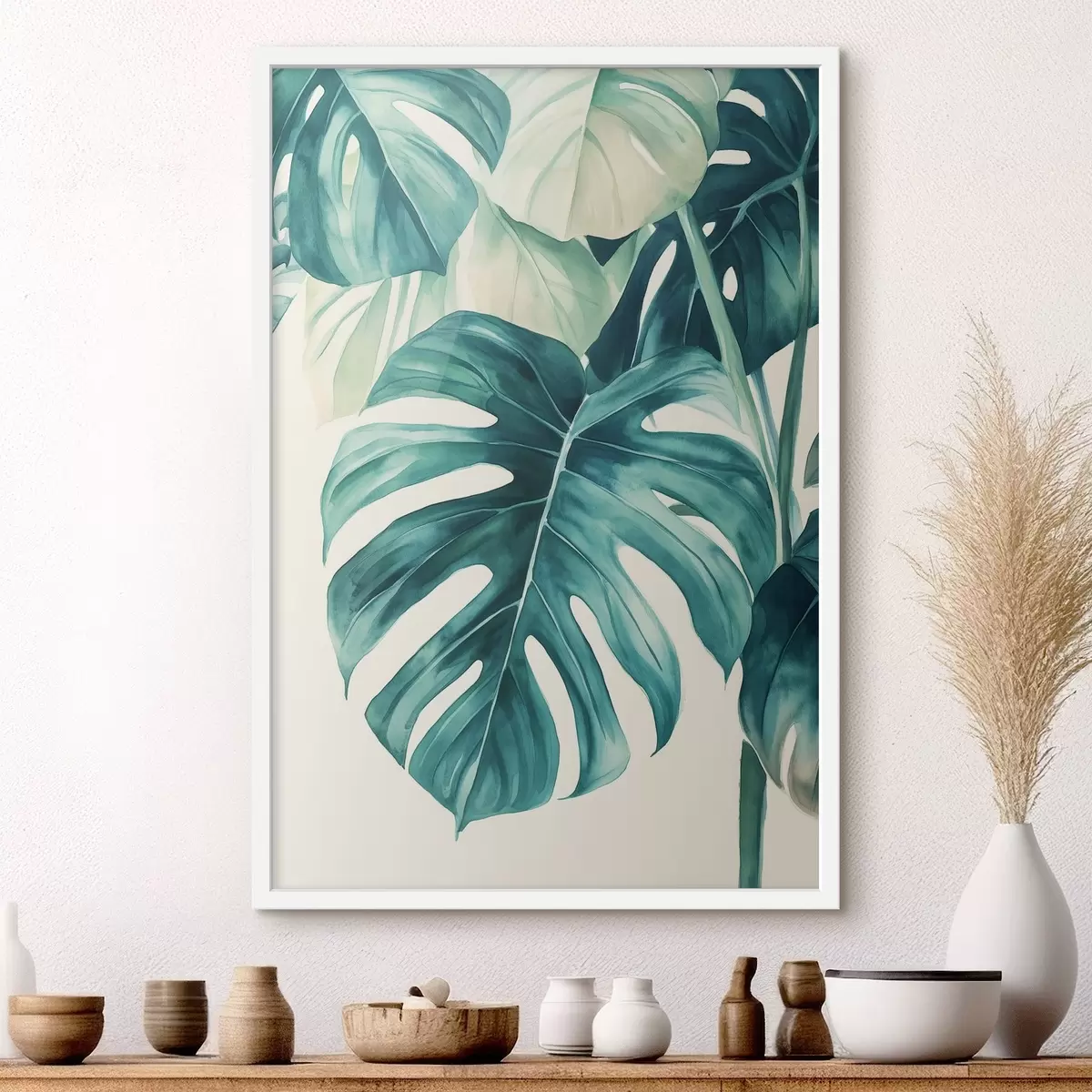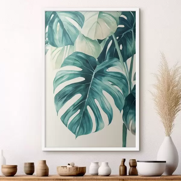Affiche Feuilles de palmier Monstera, style aquarelle, floral, tropical f43507