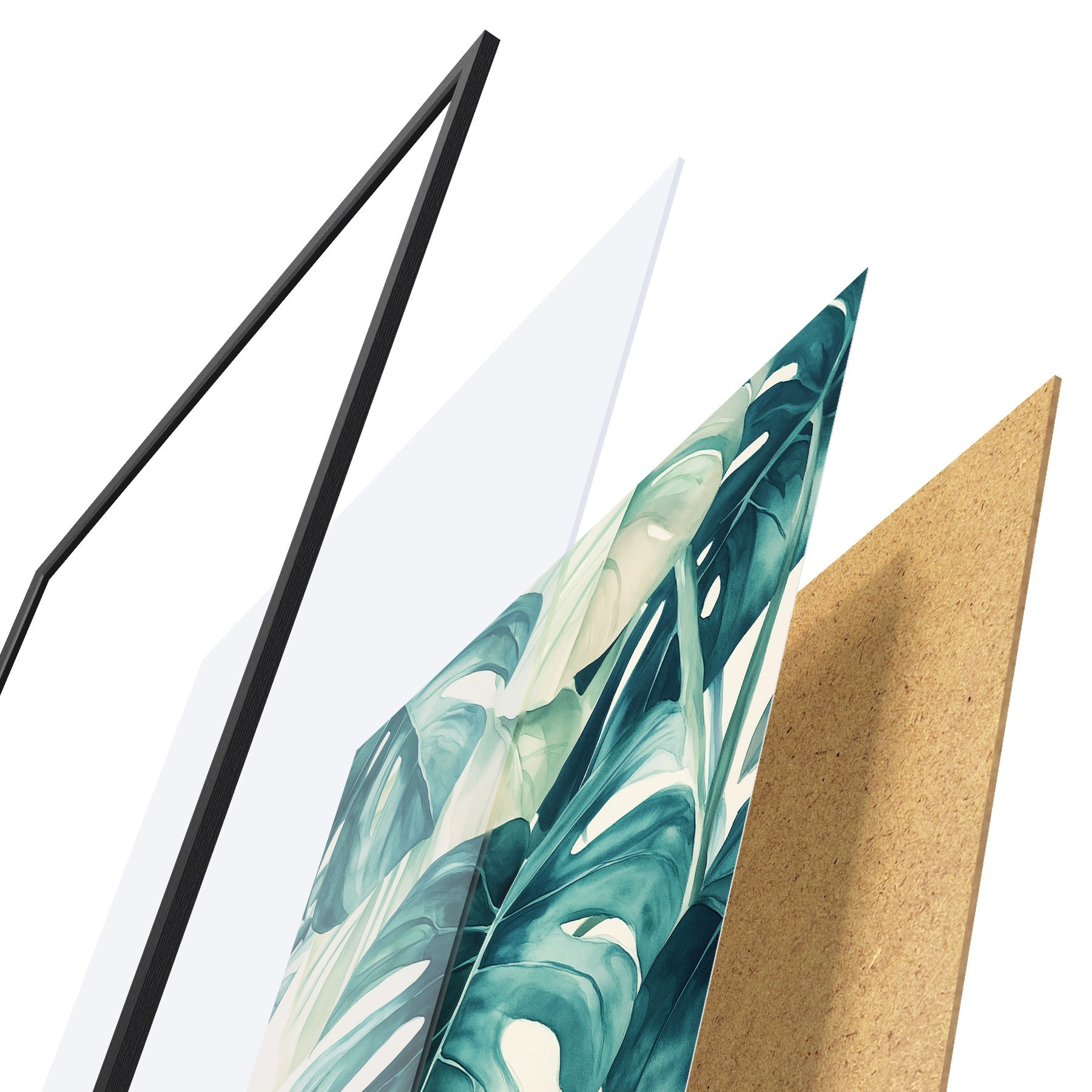 Le poster se compose d'un cadre, d'un plexiglas, d'une image imprimée et d'un support en aggloméré. Le poster peut être immédiatement accroché au mur grâce aux fixations au dos.