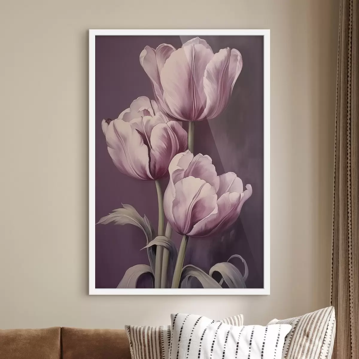 Affiche Élégantes tulipes sur fond violet Non f43513
