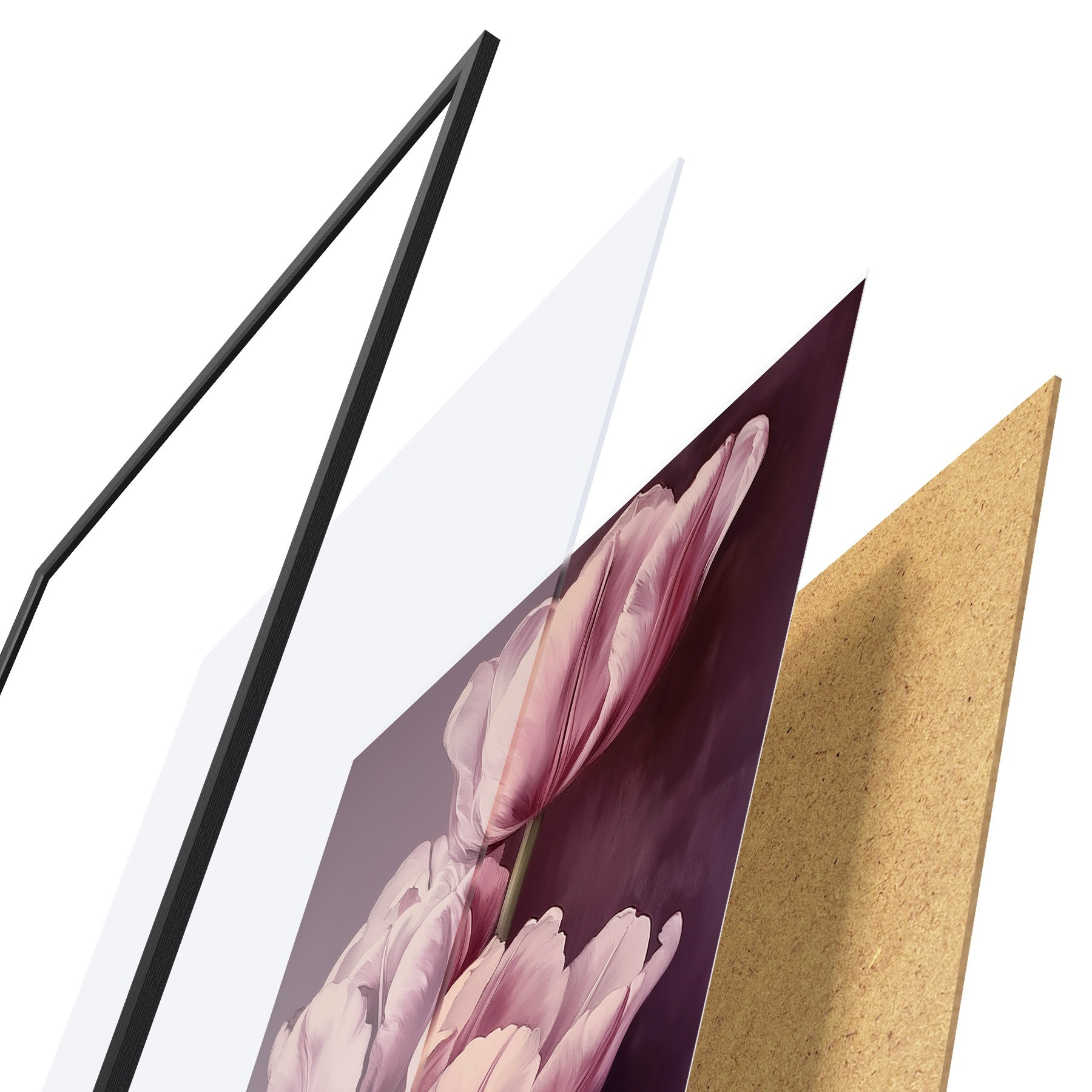 Le poster se compose d'un cadre, d'un plexiglas, d'une image imprimée et d'un support en aggloméré. Le poster peut être immédiatement accroché au mur grâce aux fixations au dos.