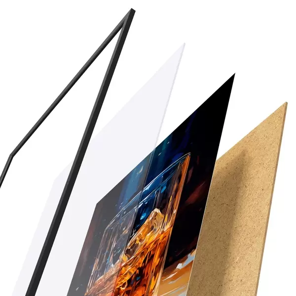Le poster se compose d'un cadre, d'un plexiglas, d'une image imprimée et d'un support en aggloméré. Le poster peut être immédiatement accroché au mur grâce aux fixations au dos.