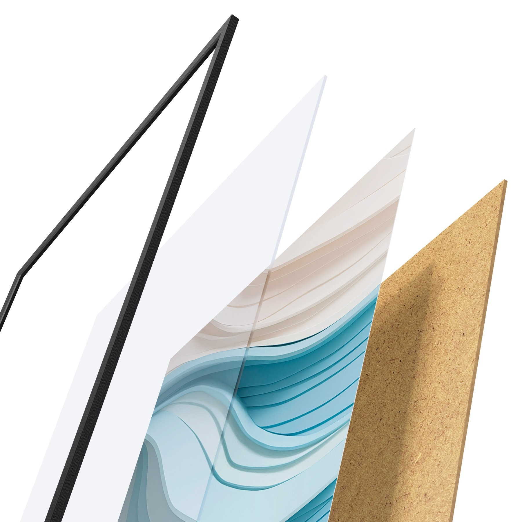 Le poster se compose d'un cadre, d'un plexiglas, d'une image imprimée et d'un support en aggloméré. Le poster peut être immédiatement accroché au mur grâce aux fixations au dos.