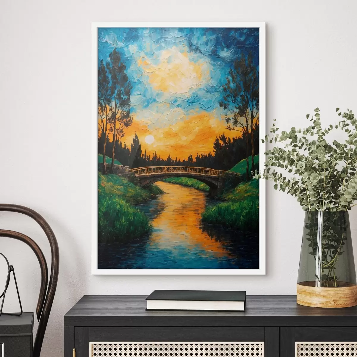 Affiche Pont dans la forêt en peinture acrylique Non f43868