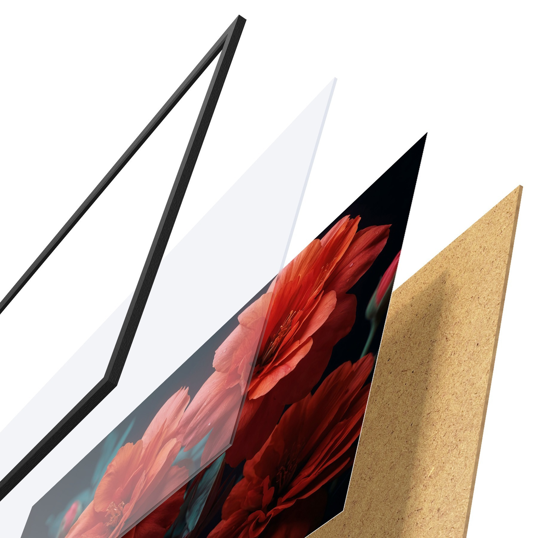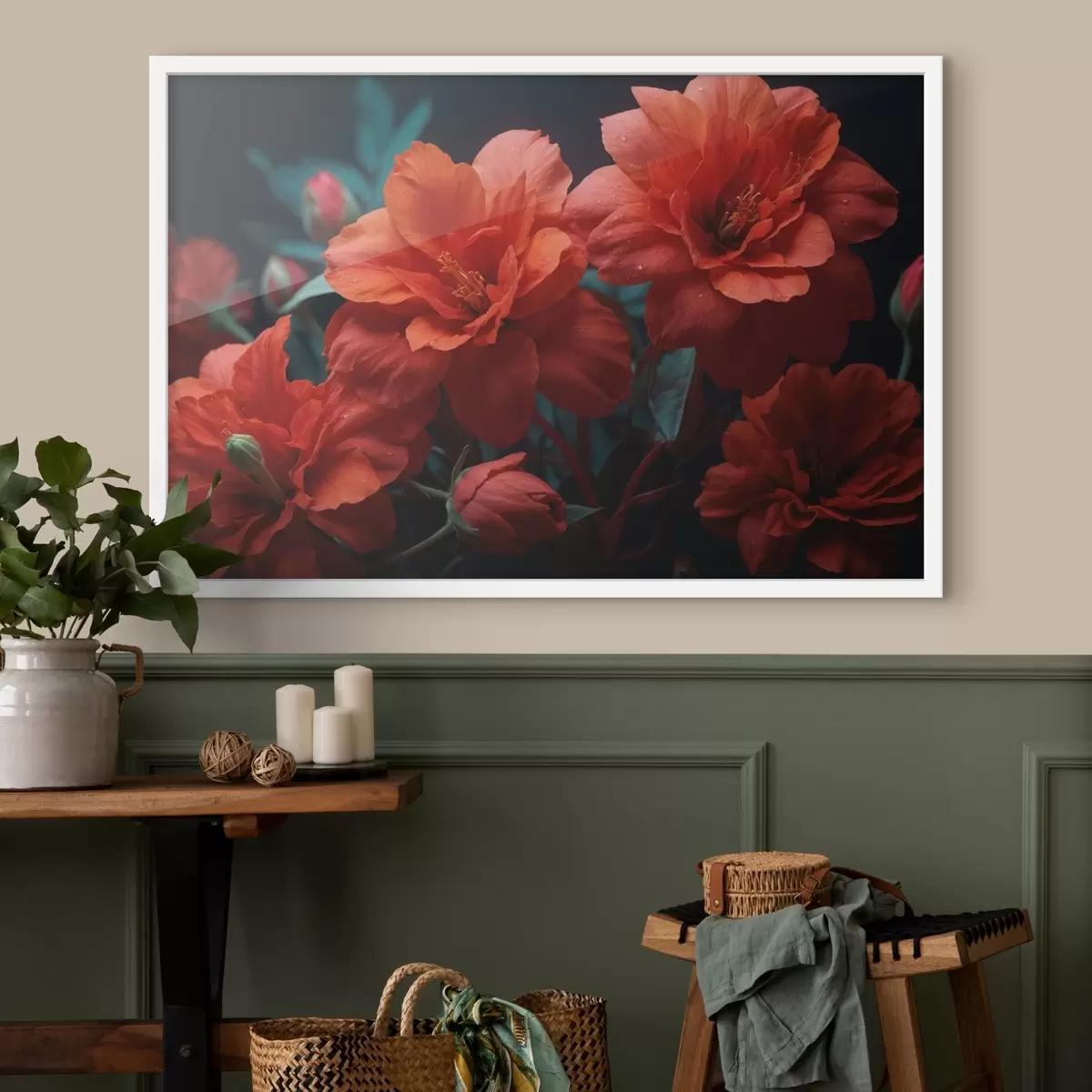 Affiche Fleurs rouges sur fond sombre Non f43877