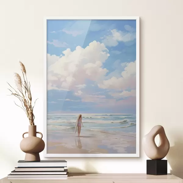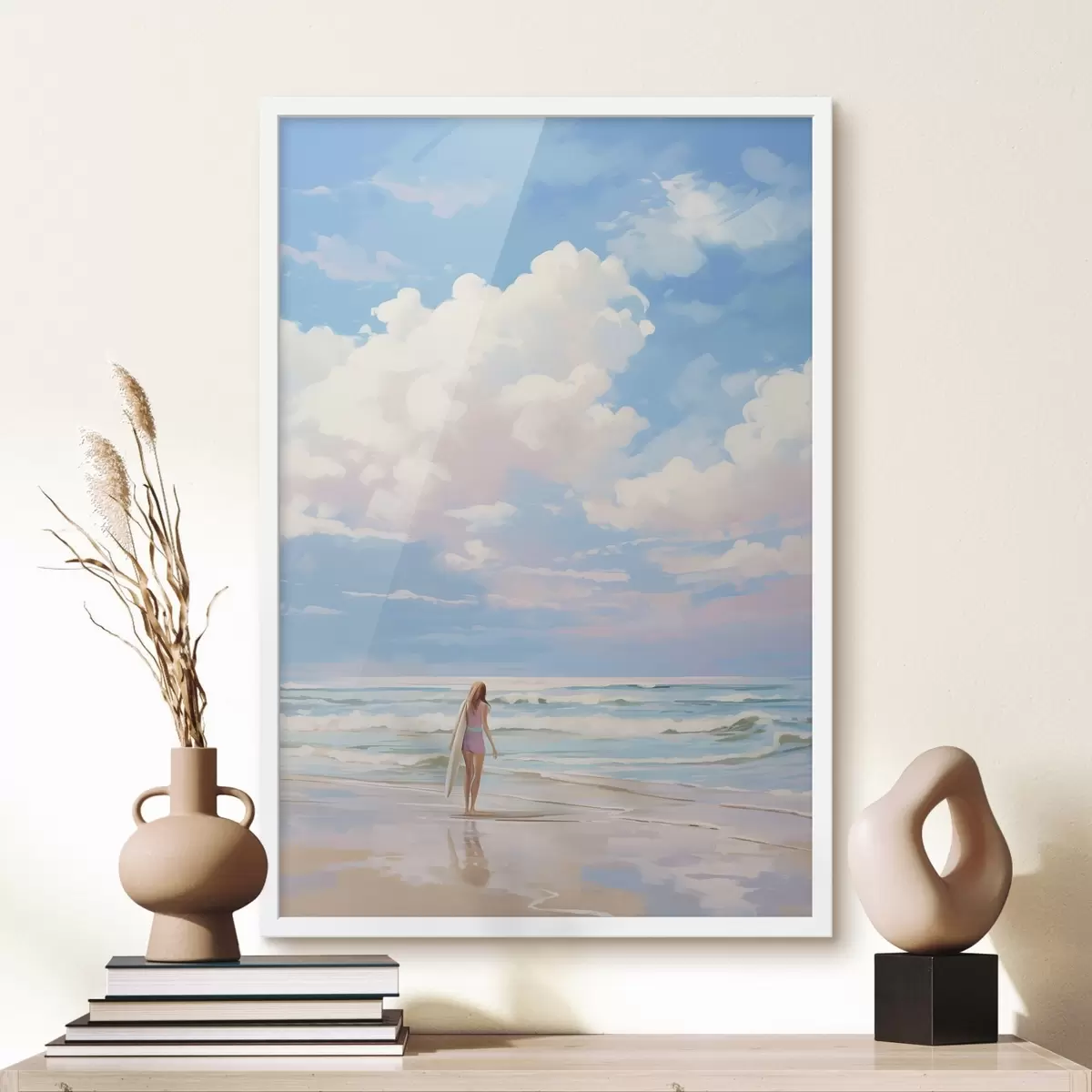 Affiche Fille surfant dans l'océan, été, vagues, style acrylique f43882