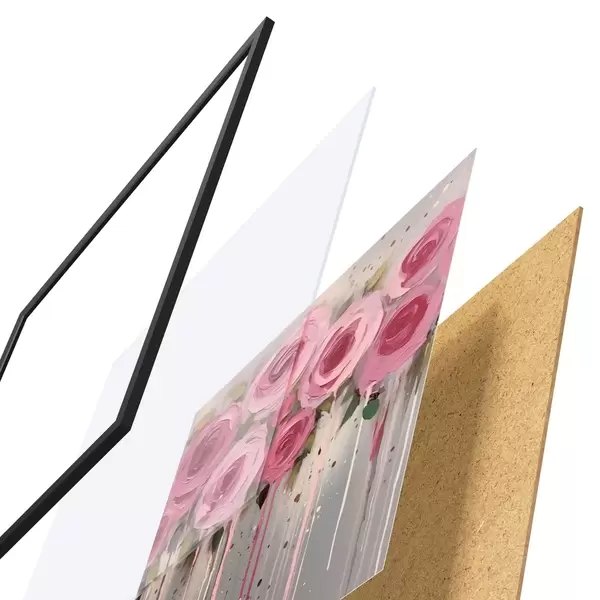Le poster se compose d'un cadre, d'un plexiglas, d'une image imprimée et d'un support en aggloméré. Le poster peut être immédiatement accroché au mur grâce aux fixations au dos.