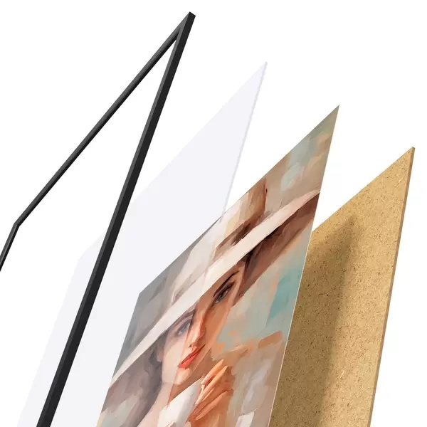 Le poster se compose d'un cadre, d'un plexiglas, d'une image imprimée et d'un support en aggloméré. Le poster peut être immédiatement accroché au mur grâce aux fixations au dos.