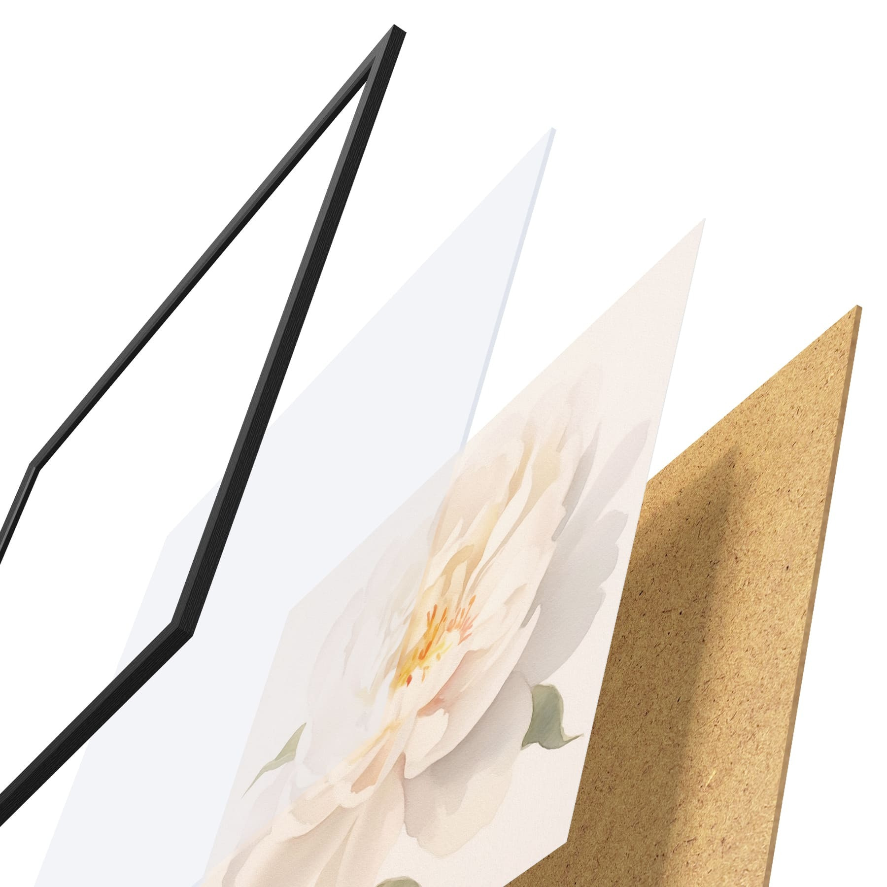Le poster se compose d'un cadre, d'un plexiglas, d'une image imprimée et d'un support en aggloméré. Le poster peut être immédiatement accroché au mur grâce aux fixations au dos.