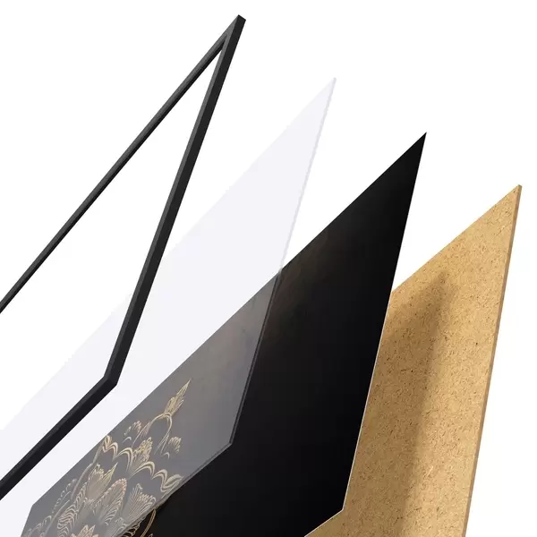 Le poster se compose d'un cadre, d'un plexiglas, d'une image imprimée et d'un support en aggloméré. Le poster peut être immédiatement accroché au mur grâce aux fixations au dos.