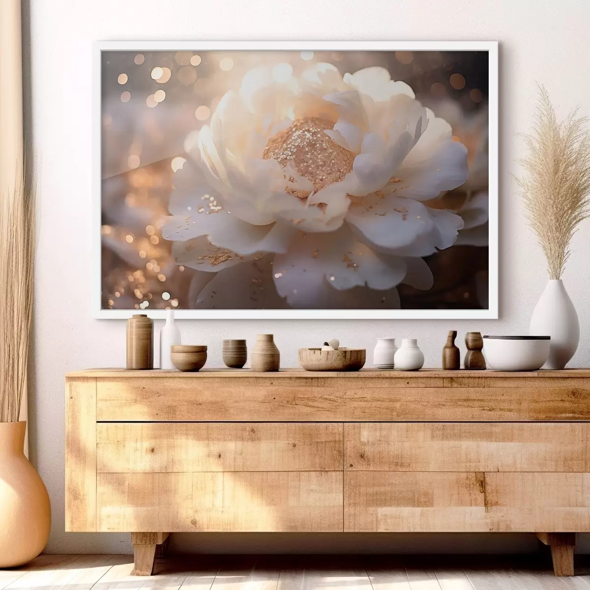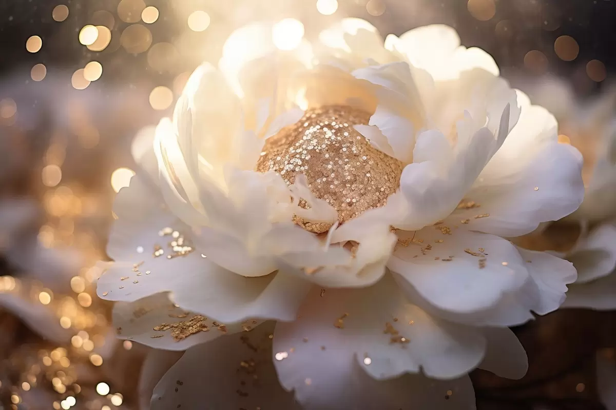 Affiche Fleur blanche avec des pièces de monnaie au milieu f43948