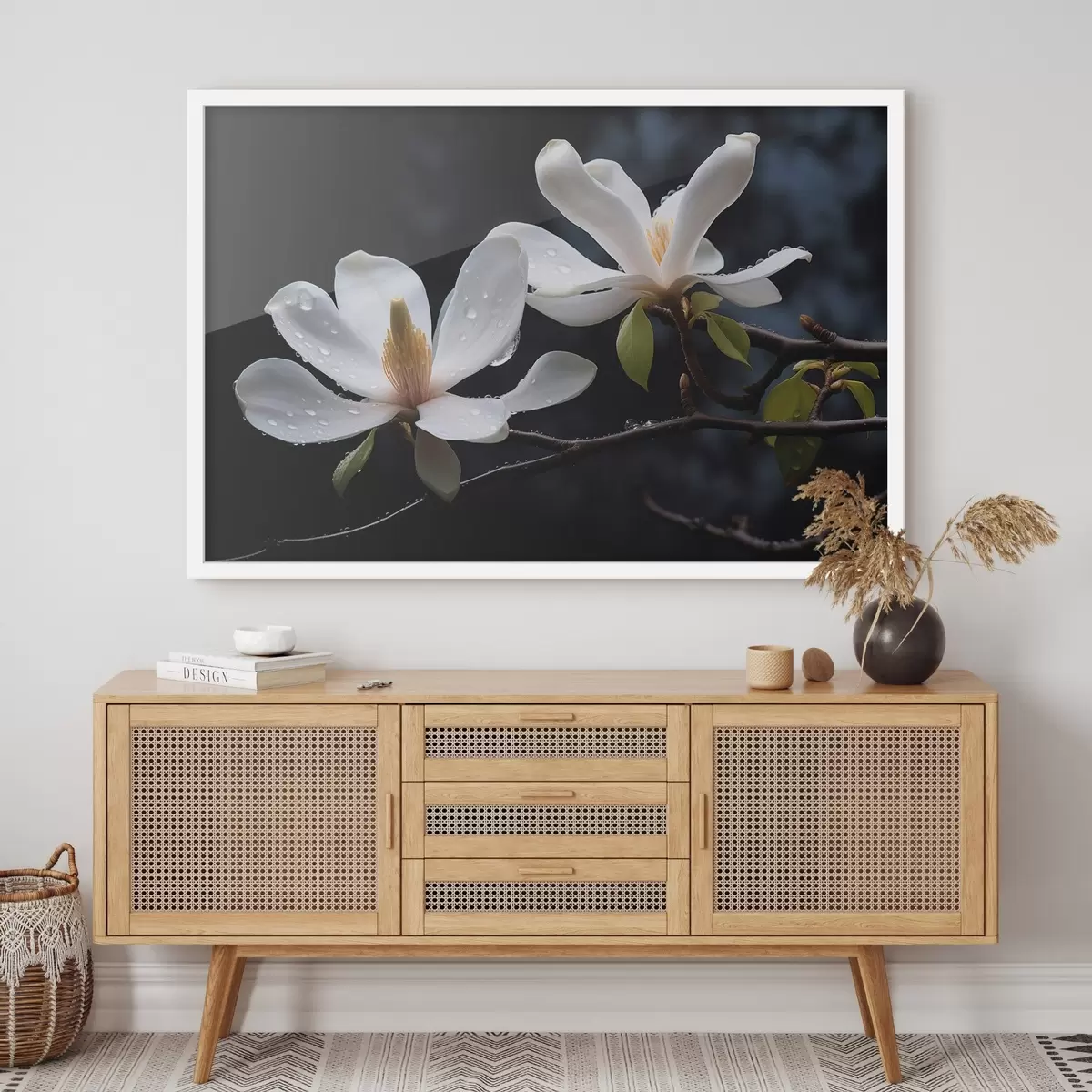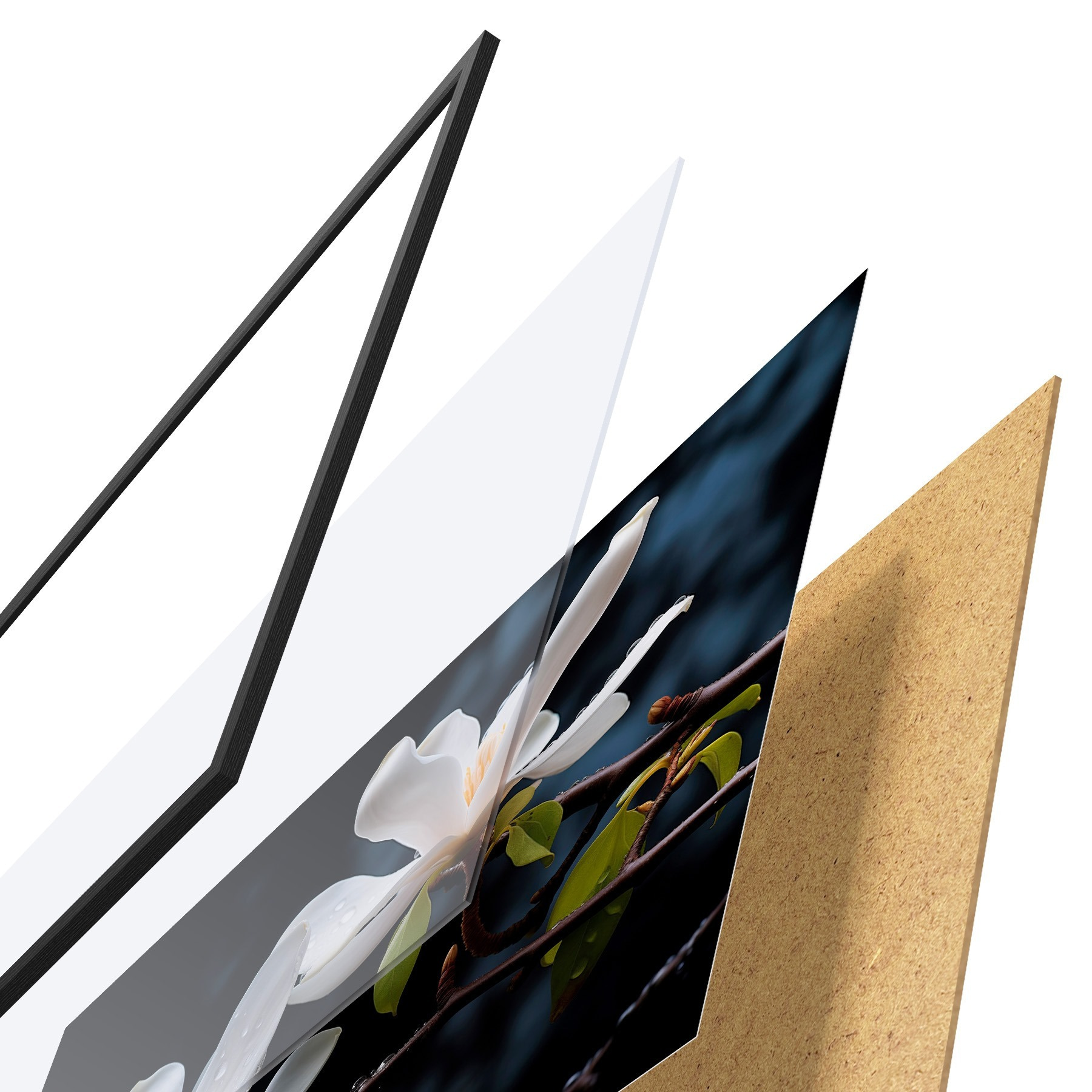 Le poster se compose d'un cadre, d'un plexiglas, d'une image imprimée et d'un support en aggloméré. Le poster peut être immédiatement accroché au mur grâce aux fixations au dos.
