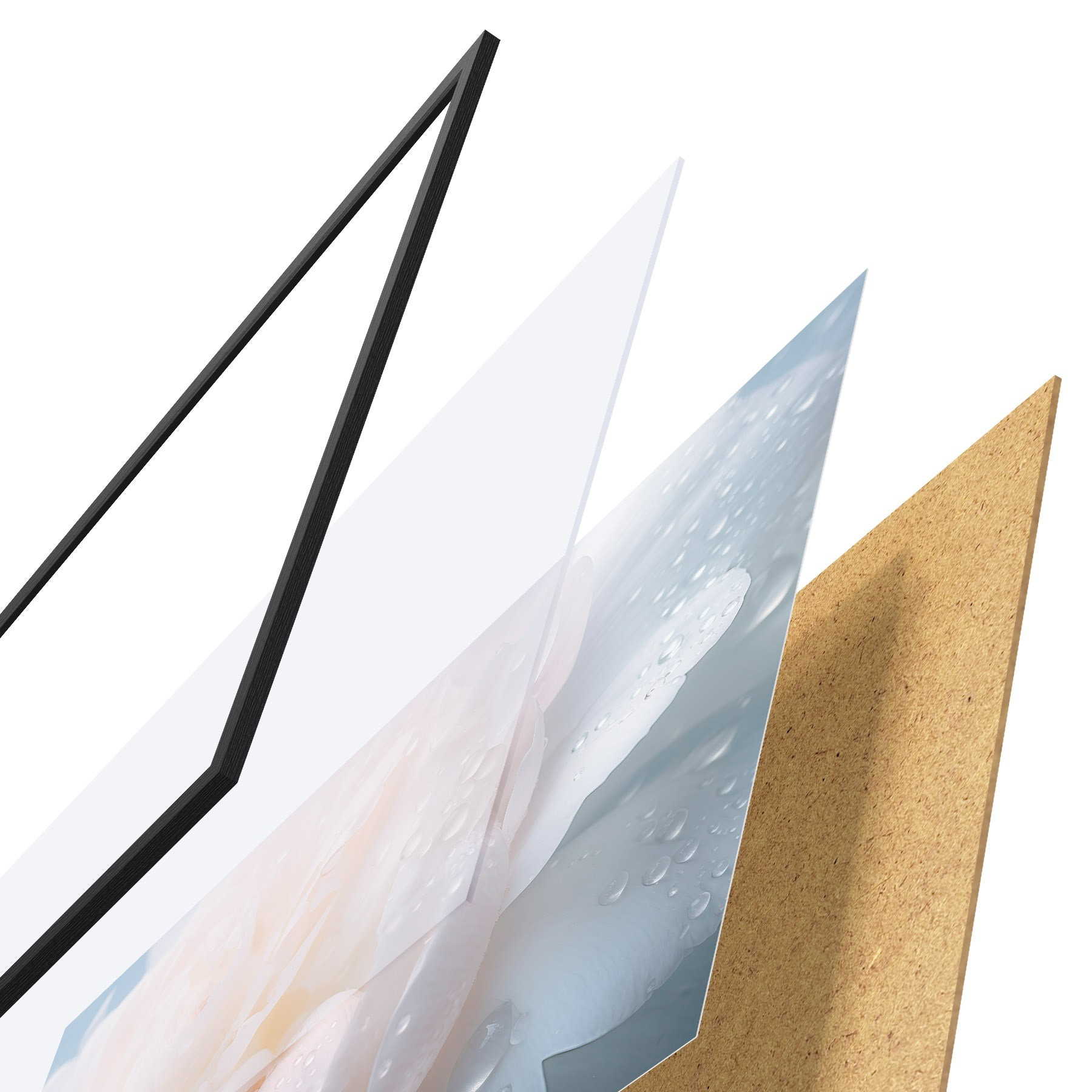 Le poster se compose d'un cadre, d'un plexiglas, d'une image imprimée et d'un support en aggloméré. Le poster peut être immédiatement accroché au mur grâce aux fixations au dos.