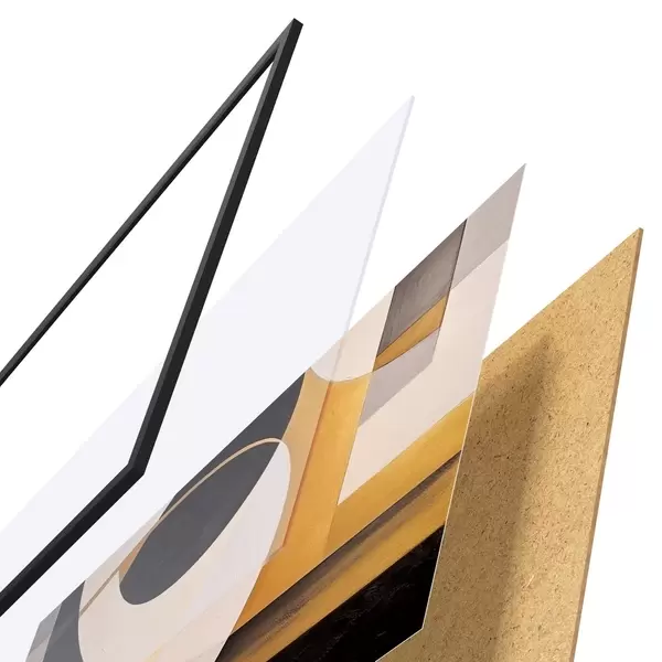 Le poster se compose d'un cadre, d'un plexiglas, d'une image imprimée et d'un support en aggloméré. Le poster peut être immédiatement accroché au mur grâce aux fixations au dos.
