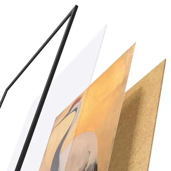 Le poster se compose d'un cadre, d'un plexiglas, d'une image imprimée et d'un support en aggloméré. Le poster peut être immédiatement accroché au mur grâce aux fixations au dos.