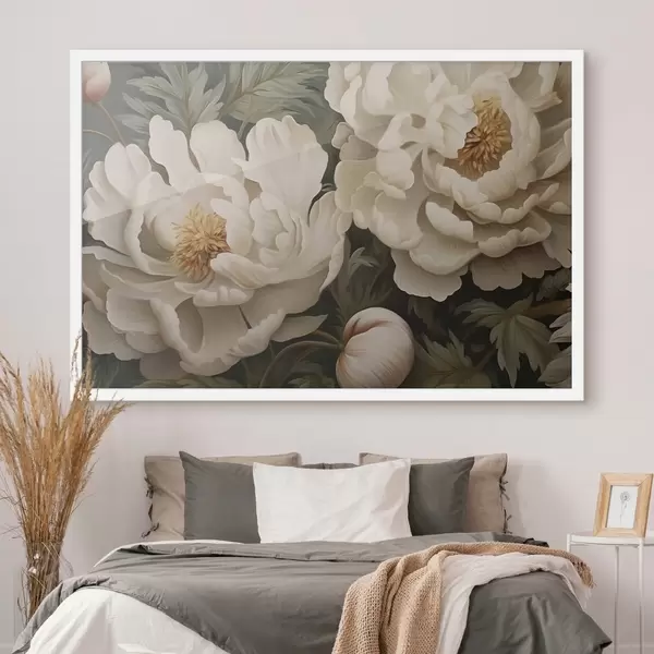 Affiche Pivoines crème parmi les feuilles vertes f43991