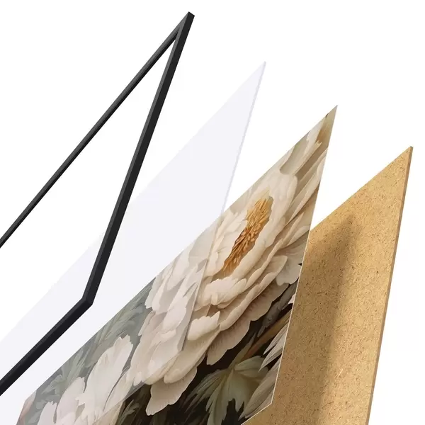 Le poster se compose d'un cadre, d'un plexiglas, d'une image imprimée et d'un support en aggloméré. Le poster peut être immédiatement accroché au mur grâce aux fixations au dos.