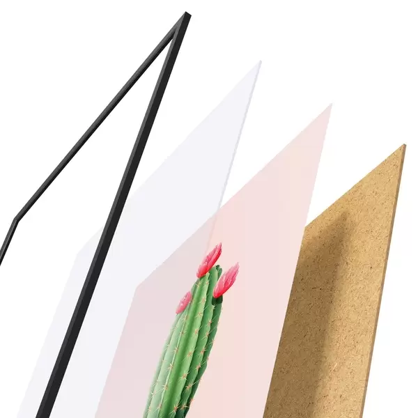 Le poster se compose d'un cadre, d'un plexiglas, d'une image imprimée et d'un support en aggloméré. Le poster peut être immédiatement accroché au mur grâce aux fixations au dos.