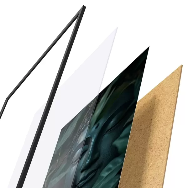 Le poster se compose d'un cadre, d'un plexiglas, d'une image imprimée et d'un support en aggloméré. Le poster peut être immédiatement accroché au mur grâce aux fixations au dos.