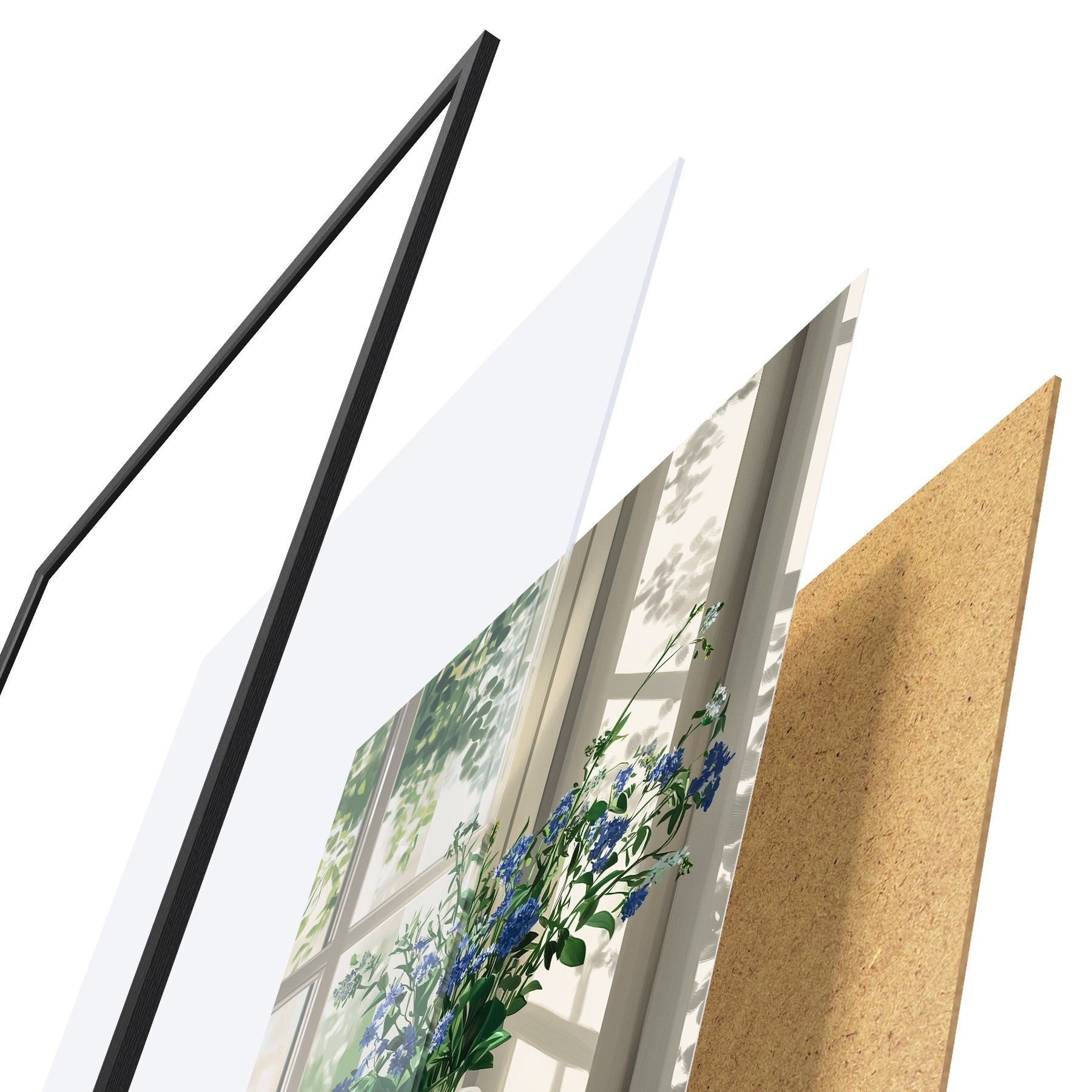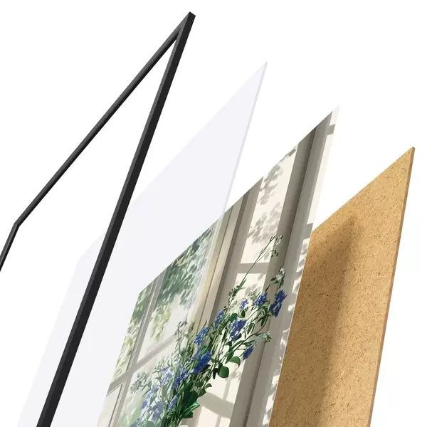Le poster se compose d'un cadre, d'un plexiglas, d'une image imprimée et d'un support en aggloméré. Le poster peut être immédiatement accroché au mur grâce aux fixations au dos.