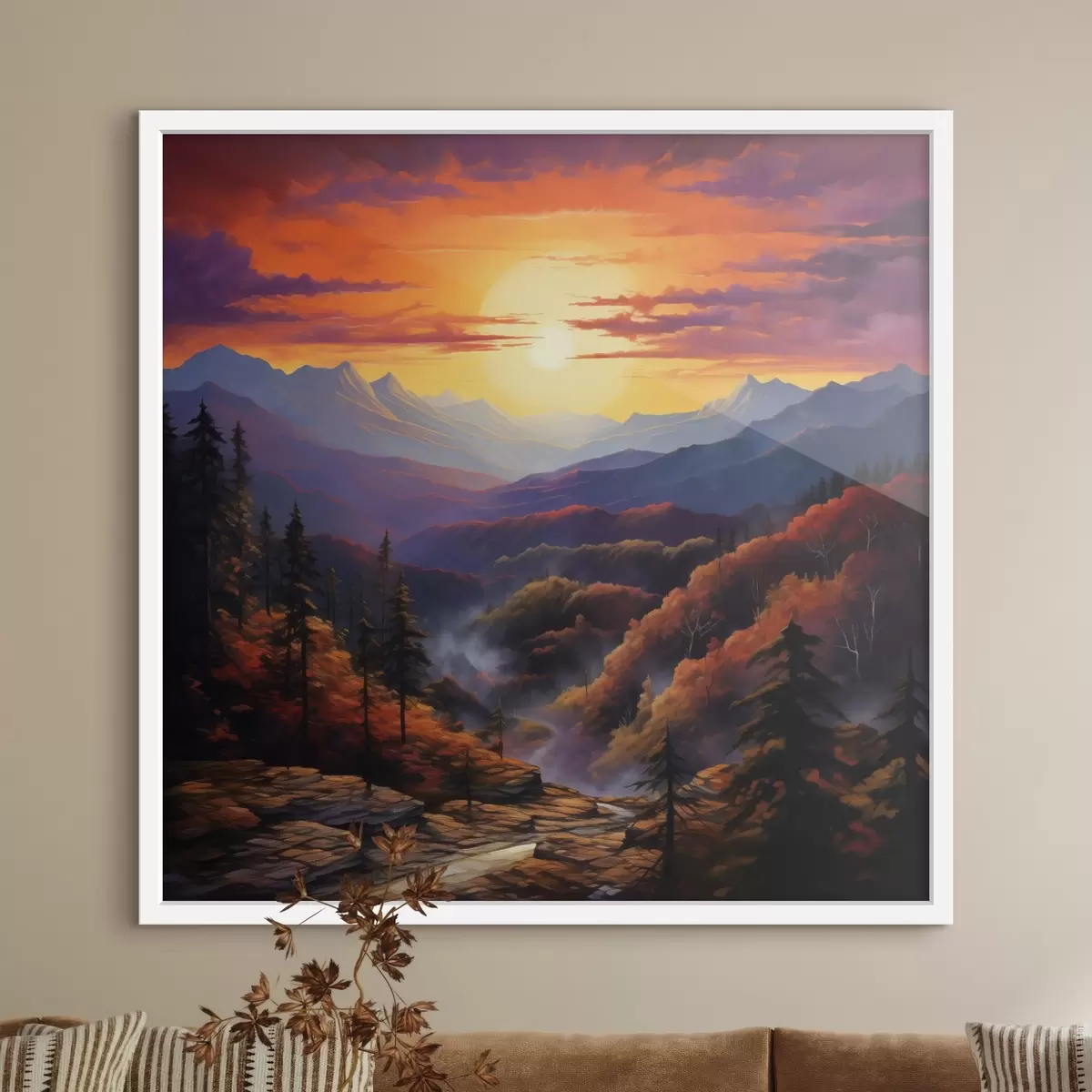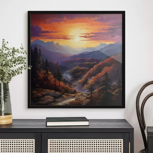 Affiche Forêt et montagnes au coucher du soleil Non f44045