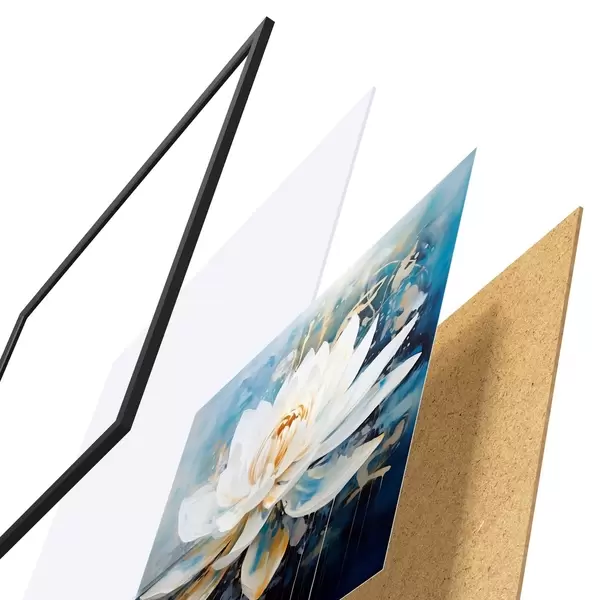 Le poster se compose d'un cadre, d'un plexiglas, d'une image imprimée et d'un support en aggloméré. Le poster peut être immédiatement accroché au mur grâce aux fixations au dos.