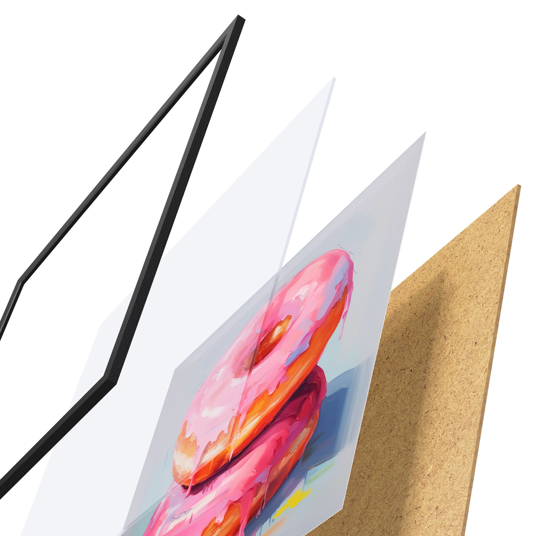 Le poster se compose d'un cadre, d'un plexiglas, d'une image imprimée et d'un support en aggloméré. Le poster peut être immédiatement accroché au mur grâce aux fixations au dos.