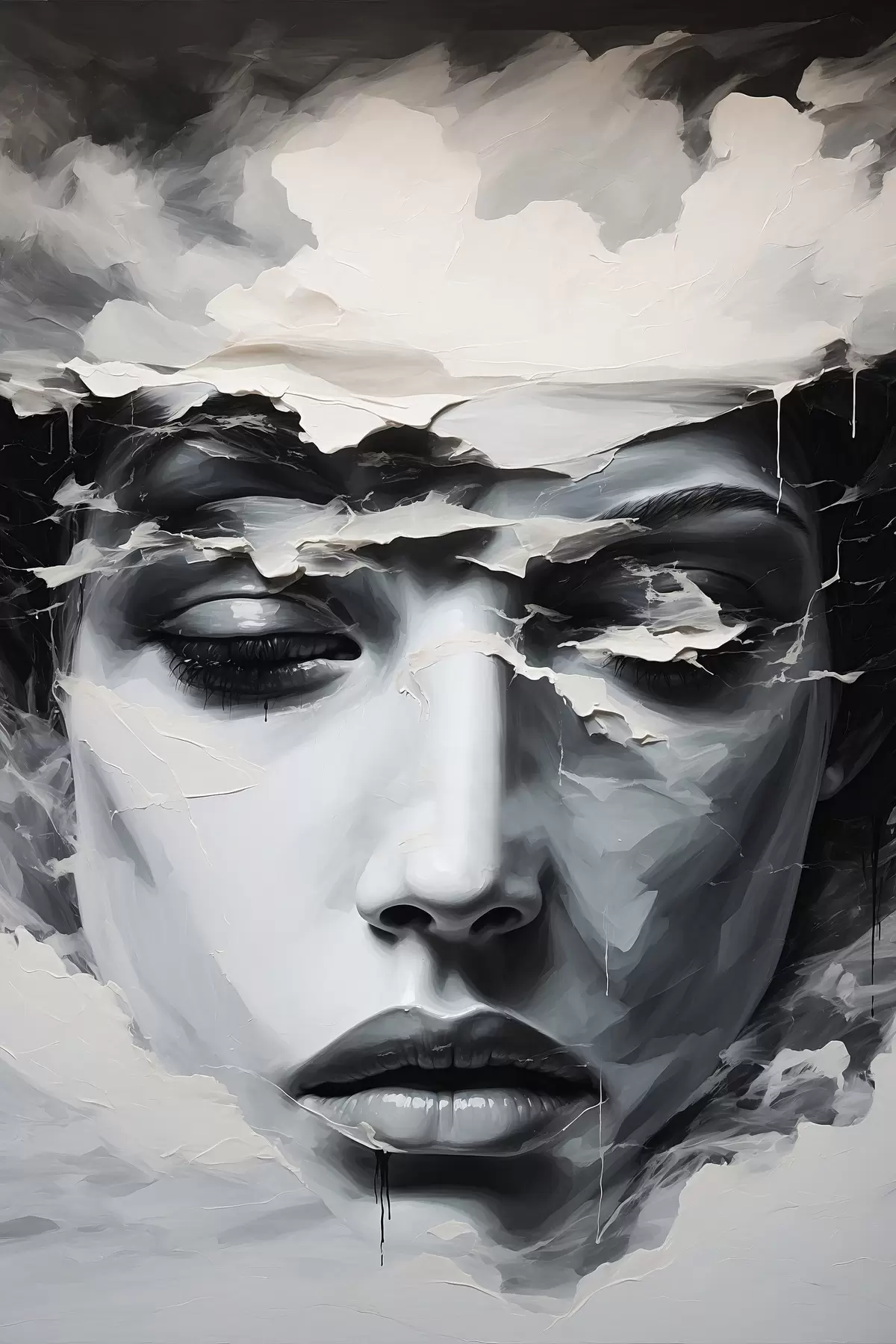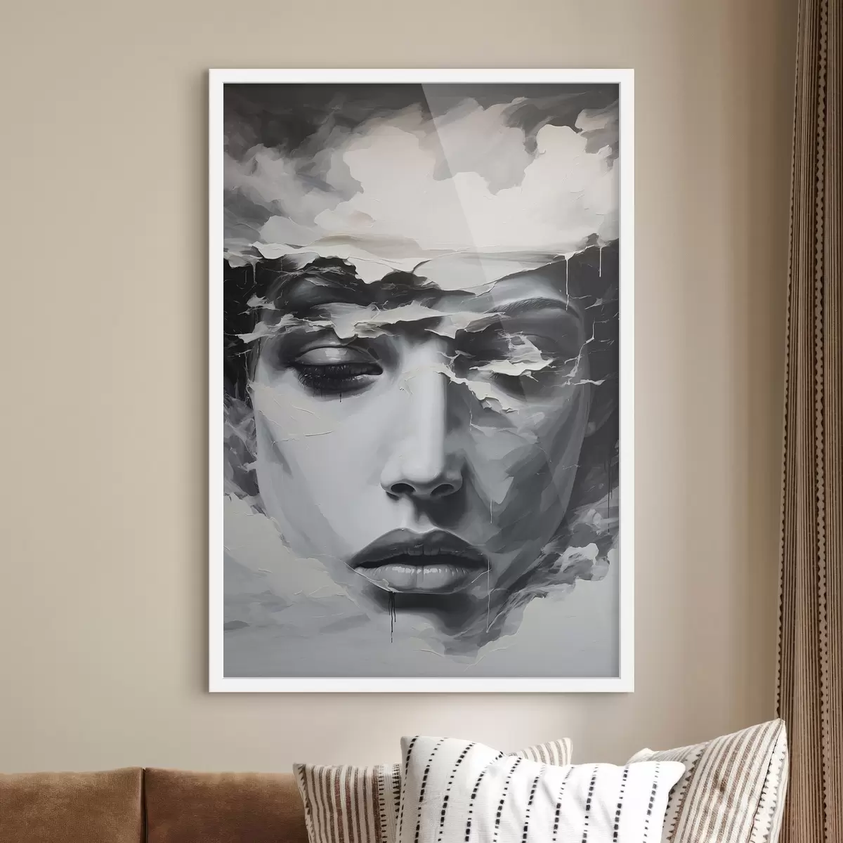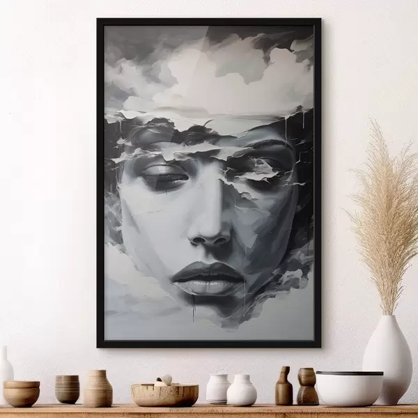 Affiche Visage féminin abstrait à l'acrylique Non f44070