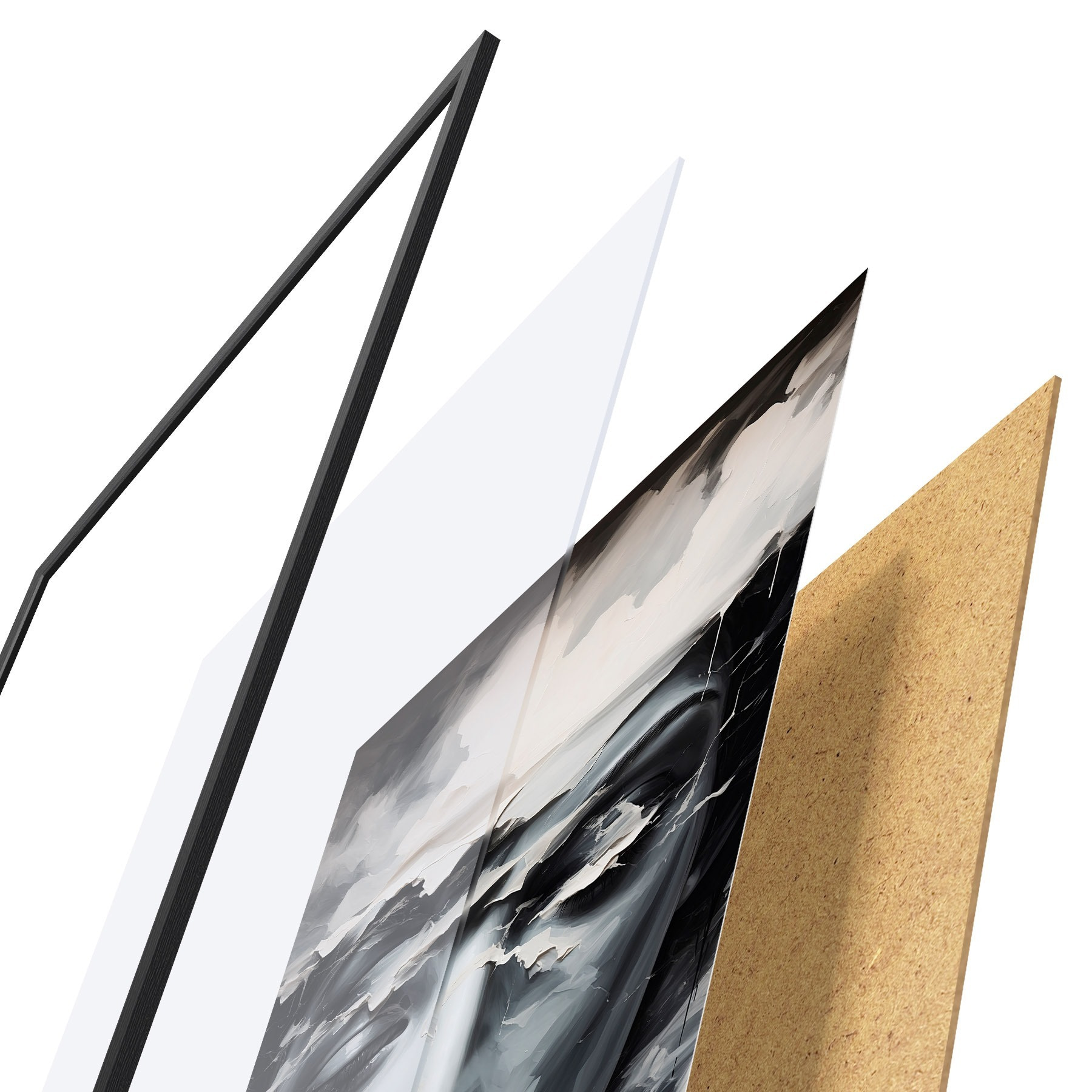 Le poster se compose d'un cadre, d'un plexiglas, d'une image imprimée et d'un support en aggloméré. Le poster peut être immédiatement accroché au mur grâce aux fixations au dos.