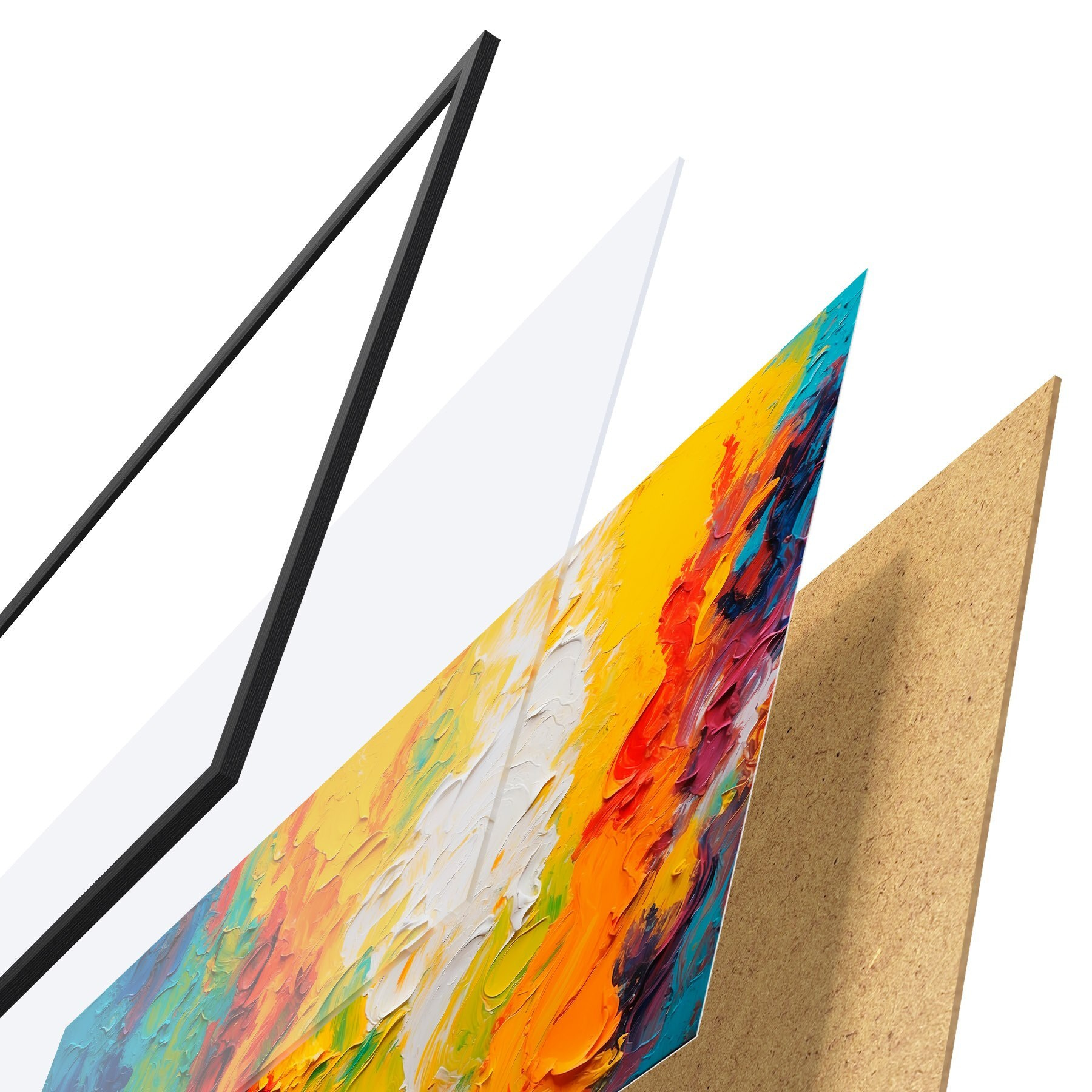 Le poster se compose d'un cadre, d'un plexiglas, d'une image imprimée et d'un support en aggloméré. Le poster peut être immédiatement accroché au mur grâce aux fixations au dos.