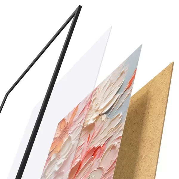 Le poster se compose d'un cadre, d'un plexiglas, d'une image imprimée et d'un support en aggloméré. Le poster peut être immédiatement accroché au mur grâce aux fixations au dos.