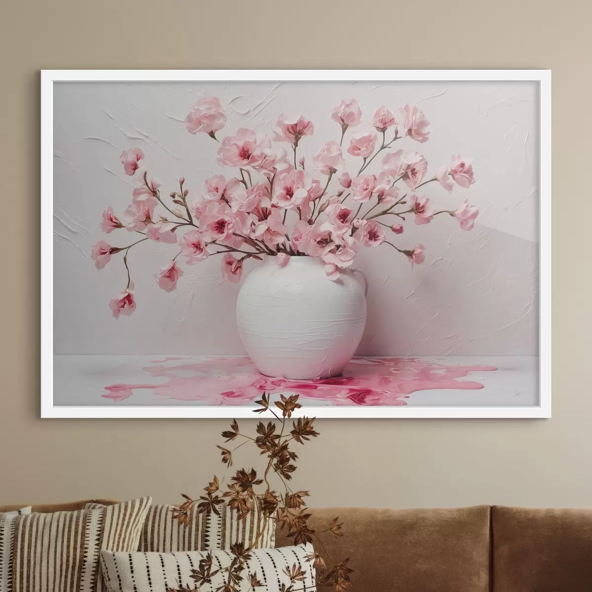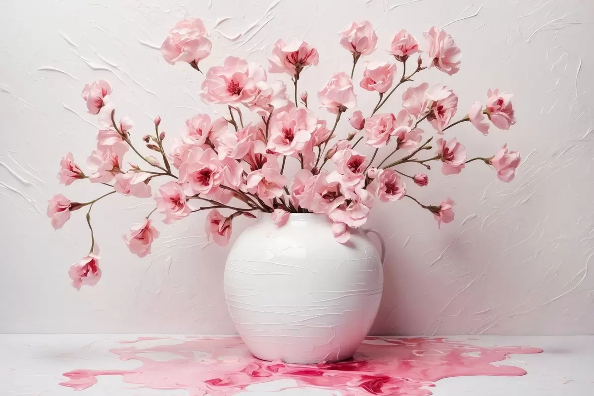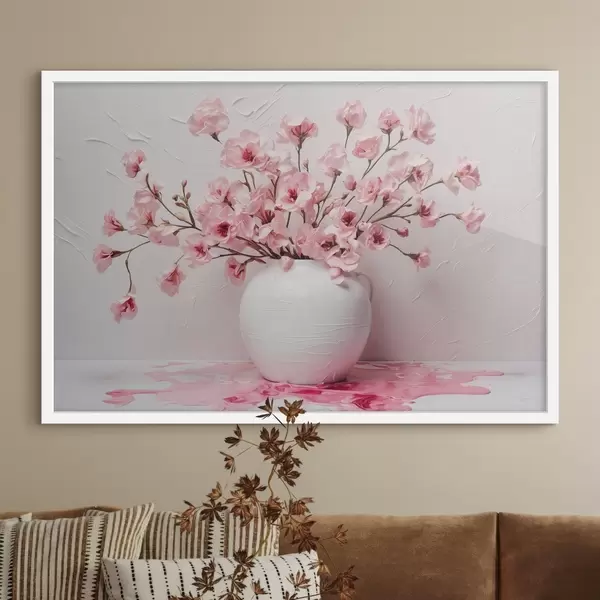 Affiche Fleurs roses dans un grand vase blanc f44081