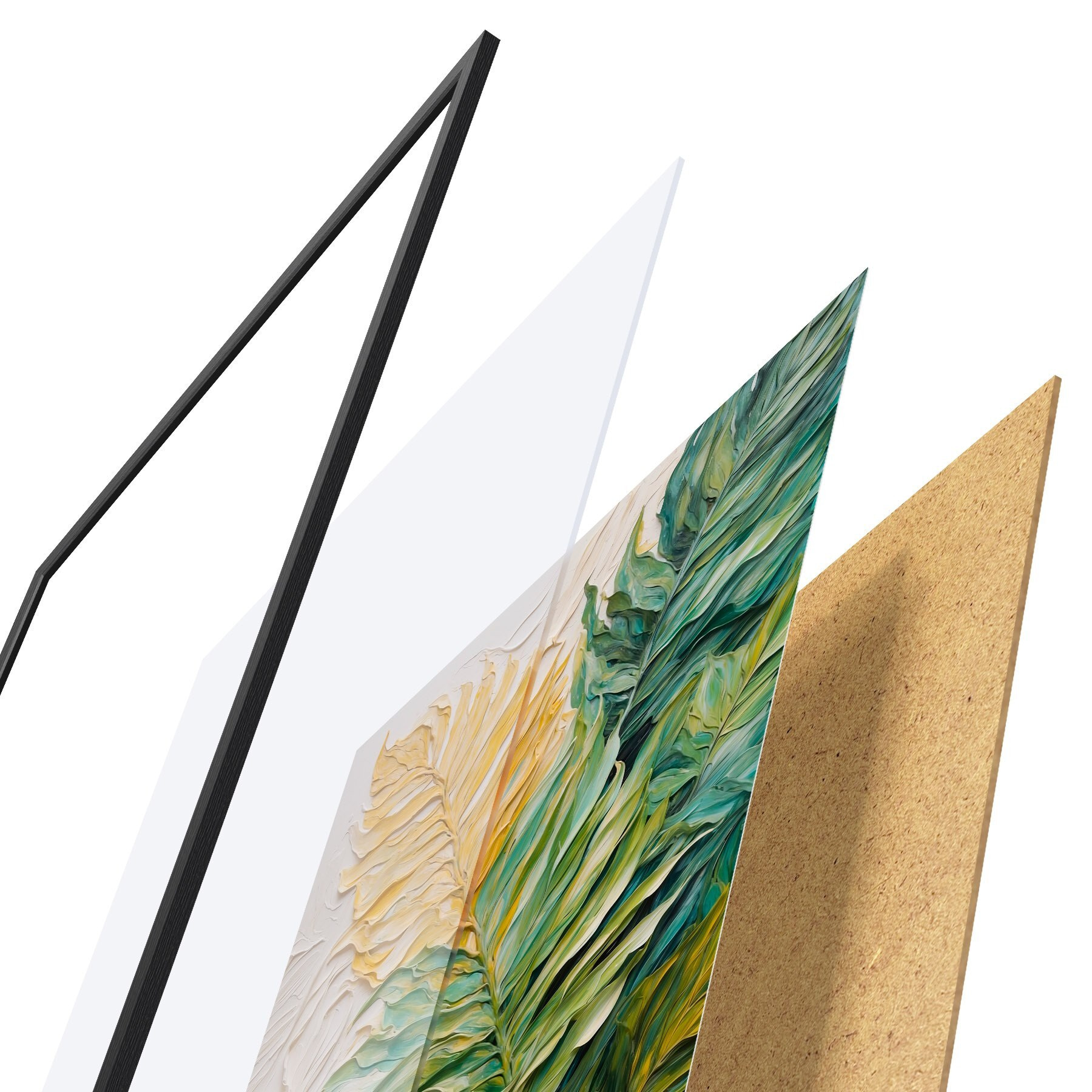 Le poster se compose d'un cadre, d'un plexiglas, d'une image imprimée et d'un support en aggloméré. Le poster peut être immédiatement accroché au mur grâce aux fixations au dos.