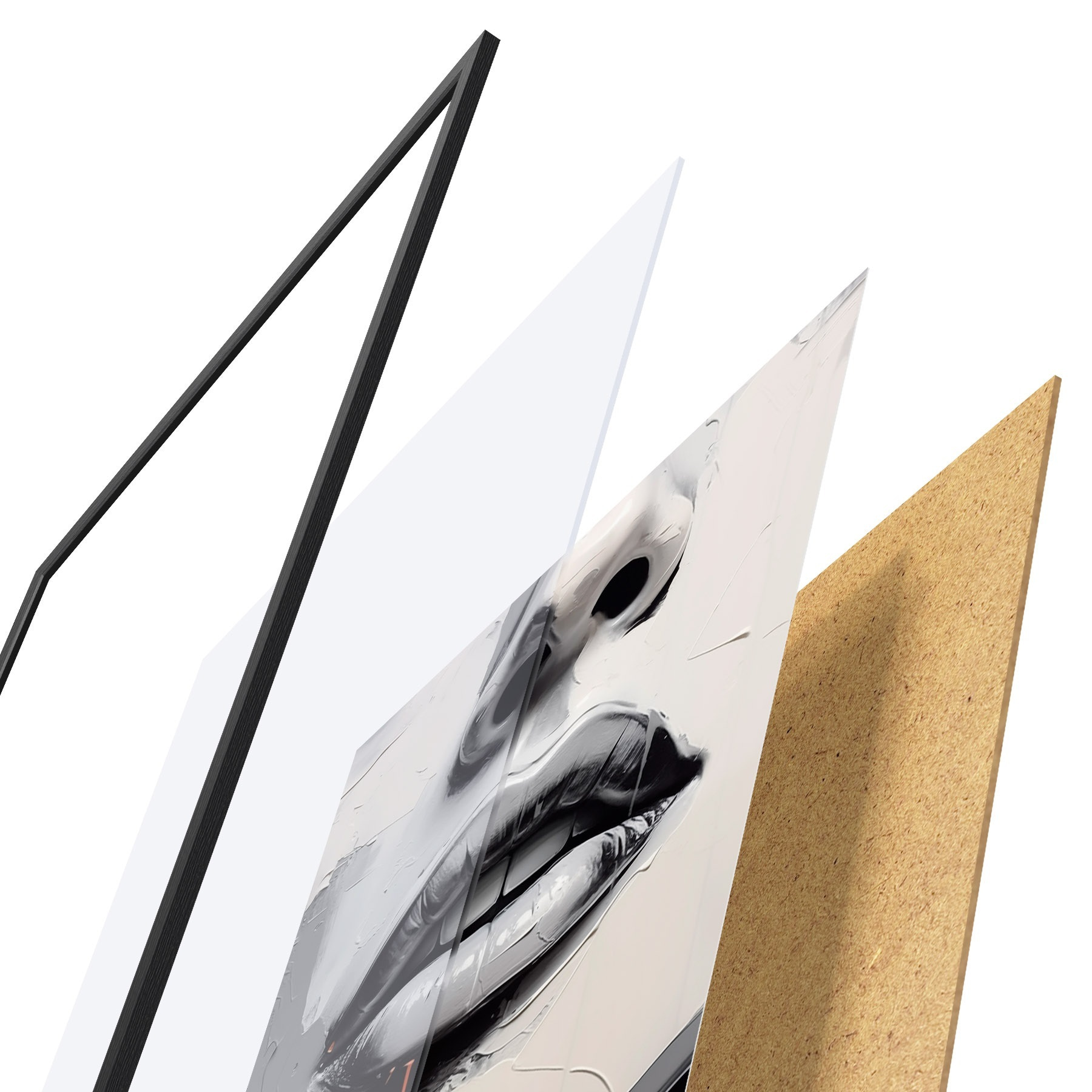Le poster se compose d'un cadre, d'un plexiglas, d'une image imprimée et d'un support en aggloméré. Le poster peut être immédiatement accroché au mur grâce aux fixations au dos.