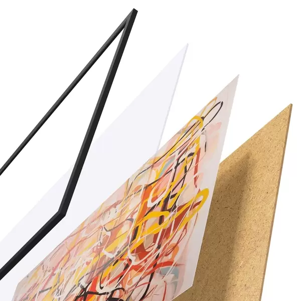 Le poster se compose d'un cadre, d'un plexiglas, d'une image imprimée et d'un support en aggloméré. Le poster peut être immédiatement accroché au mur grâce aux fixations au dos.