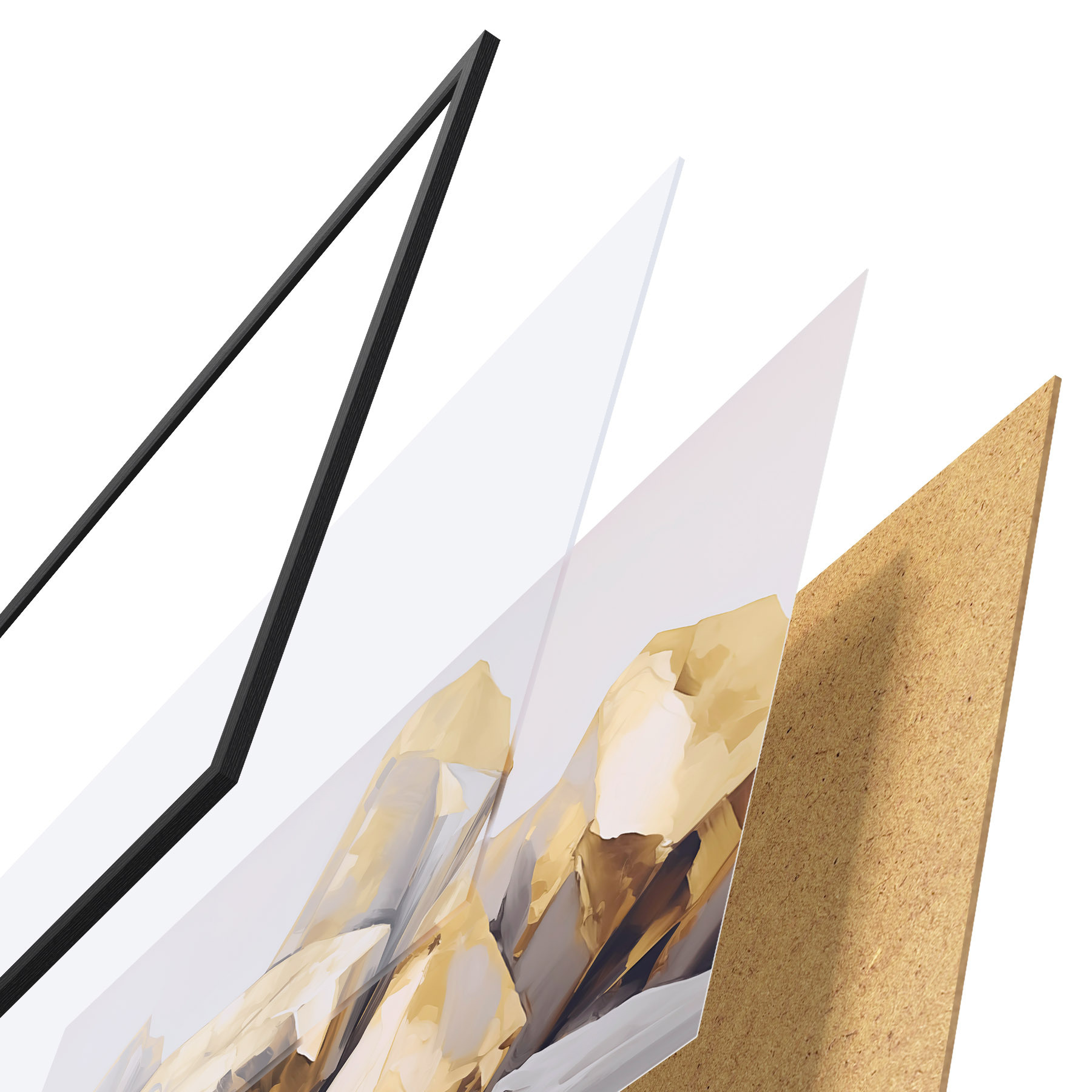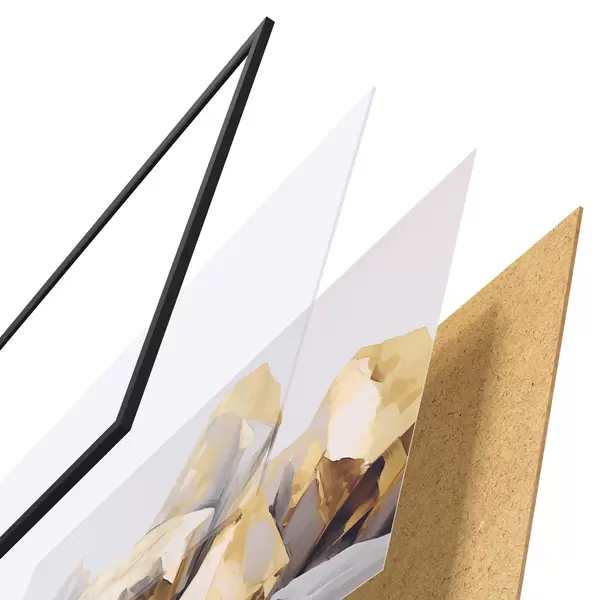 Le poster se compose d'un cadre, d'un plexiglas, d'une image imprimée et d'un support en aggloméré. Le poster peut être immédiatement accroché au mur grâce aux fixations au dos.