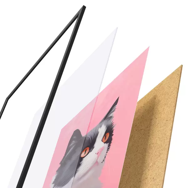 Le poster se compose d'un cadre, d'un plexiglas, d'une image imprimée et d'un support en aggloméré. Le poster peut être immédiatement accroché au mur grâce aux fixations au dos.