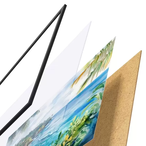 Le poster se compose d'un cadre, d'un plexiglas, d'une image imprimée et d'un support en aggloméré. Le poster peut être immédiatement accroché au mur grâce aux fixations au dos.