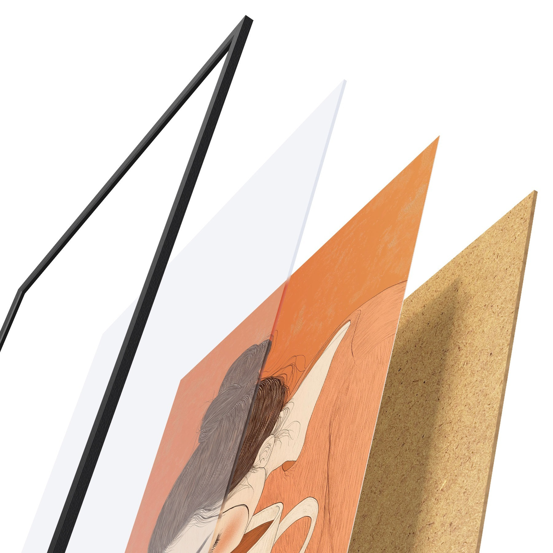 Le poster se compose d'un cadre, d'un plexiglas, d'une image imprimée et d'un support en aggloméré. Le poster peut être immédiatement accroché au mur grâce aux fixations au dos.